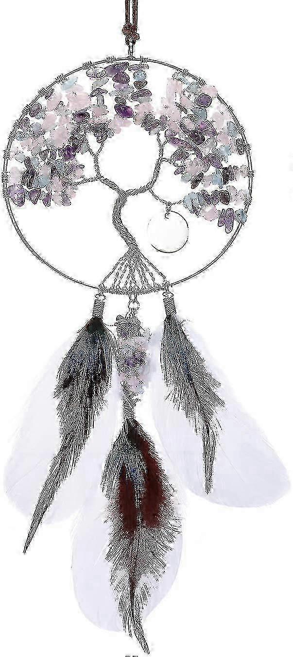 Hanging Decorative Healing Crystal Purple Pink Blue Stone Dream Catcher Handmade Feather SZRH A-S