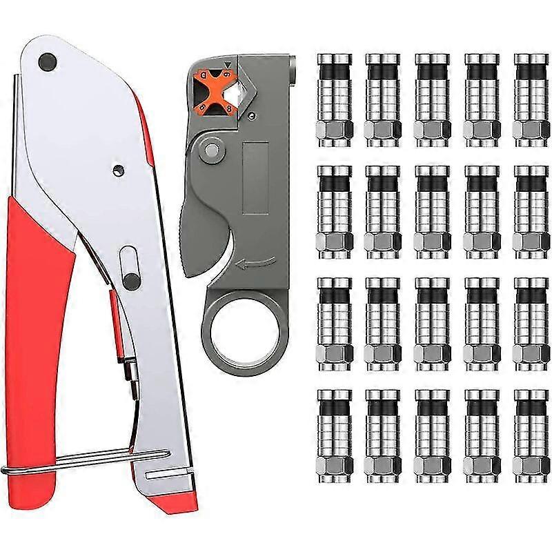 Coaxial Cable Crimping Pliers Coaxial Cable Stripping Tool Coaxial Compression Tool Kit Wire Stripper with F RG 6 Connectors