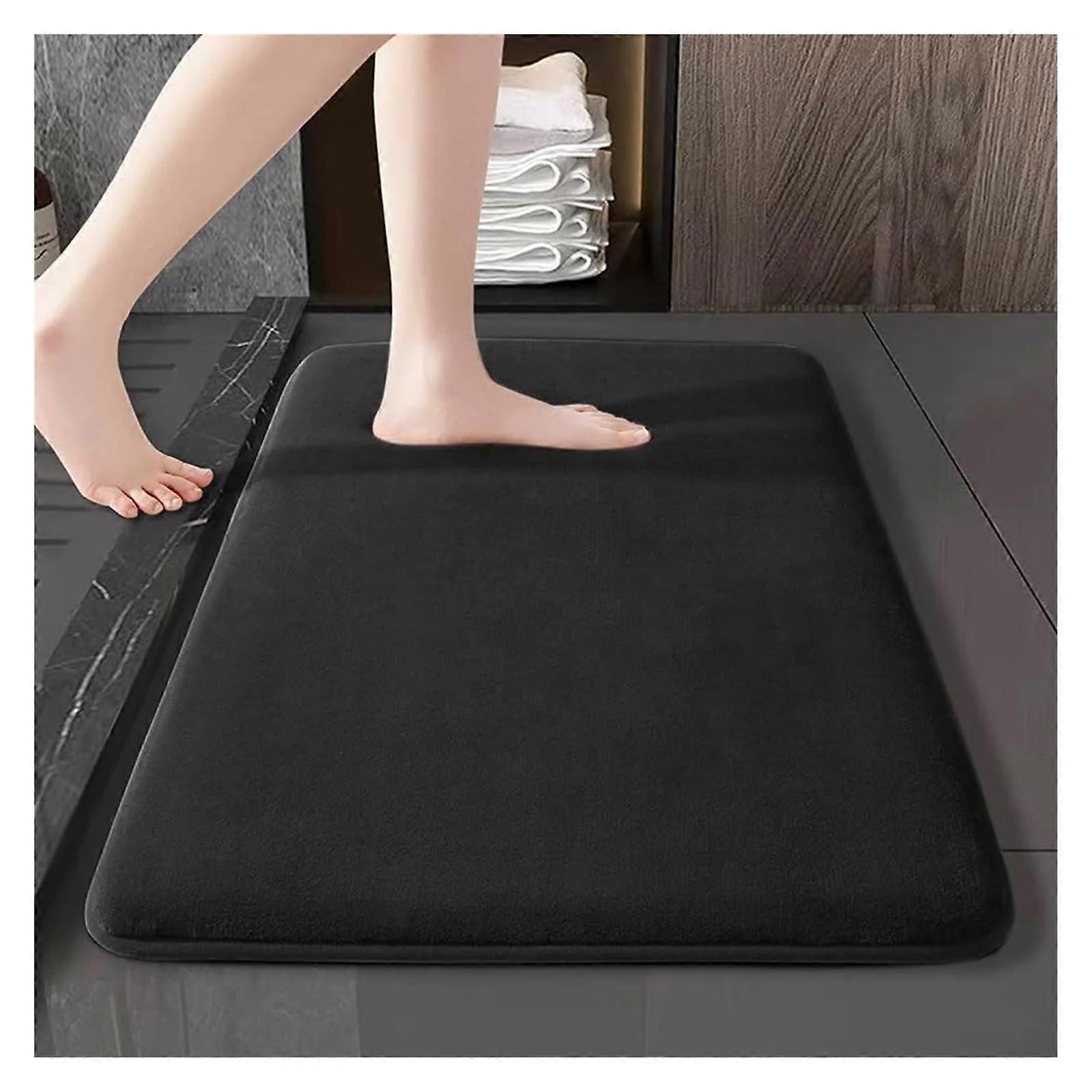 Absorbent bath mat nonslip coral fleece bathroom floor mat doormat (02 Black, 50cm x 80cm) 50 x 80 cm (Square) 02 Black