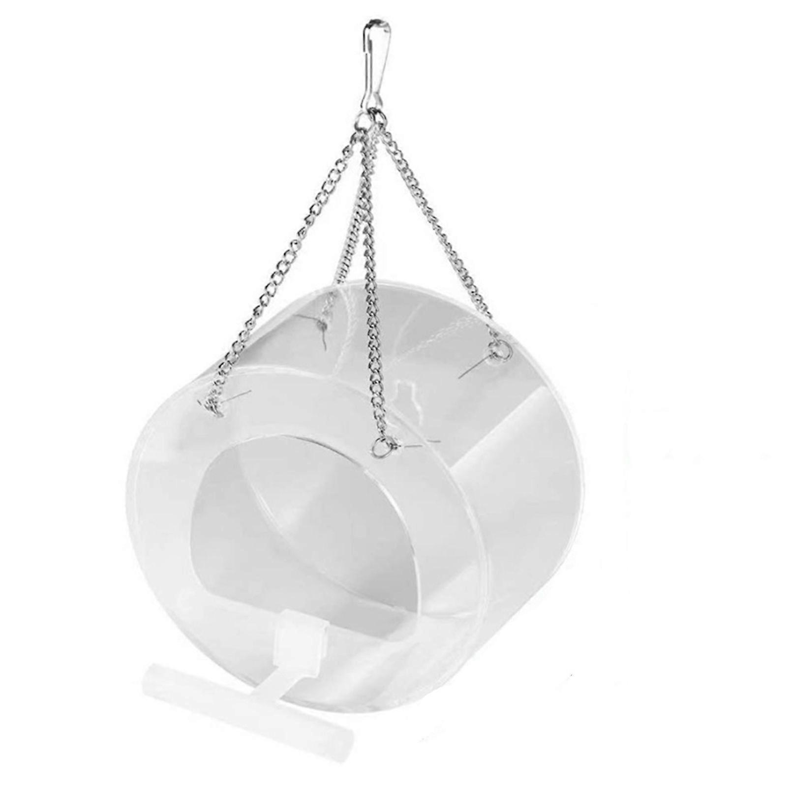 Bird Feeder With Suction Cup Round Acrylic Bird Food Box Hanging Outdoor