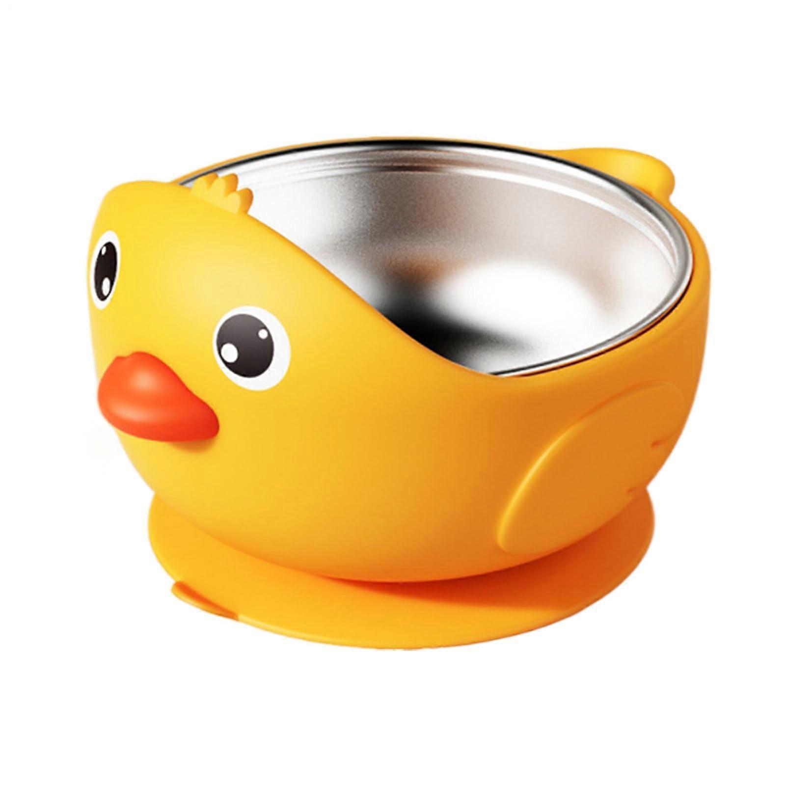 Baby Bowls with Suction Base Cartoon Designs Leakproof Shatterproof for Kids Yellow