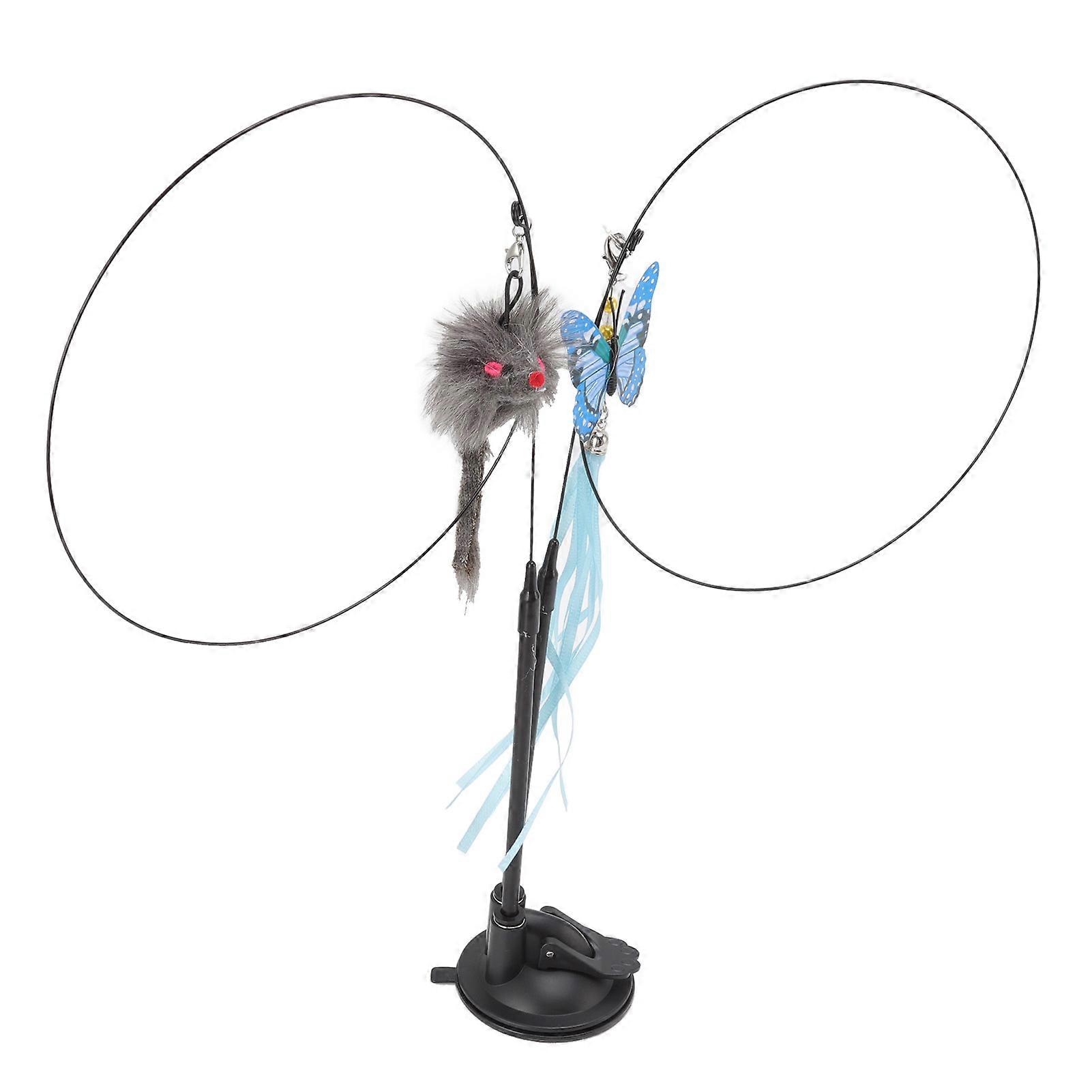 Suction Cat Feather Wand Toy Double End Removable Steel Wire Interactive Cat Teaser Stick Toy for Indoor Blue Scalewing and Gray Mouse