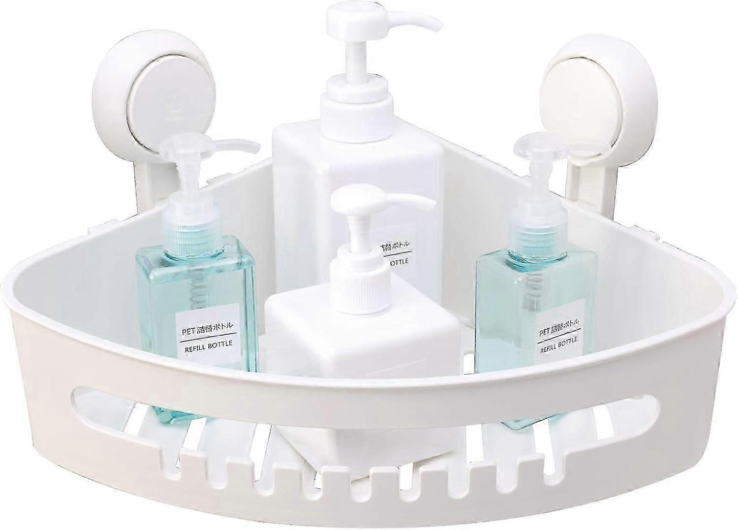 Corner Shower Caddy with Suction Cups - Small Bathroom Shelf, Plastic Hanging Organizer, No Drill Shower Storage Basket