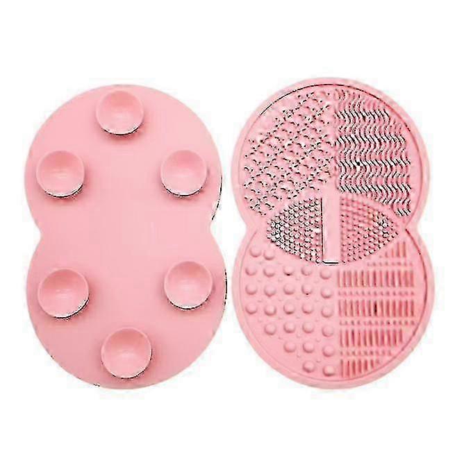 Makeup Brush Cleaning Mat with Suction Cups - Pink Silicone Cleaner