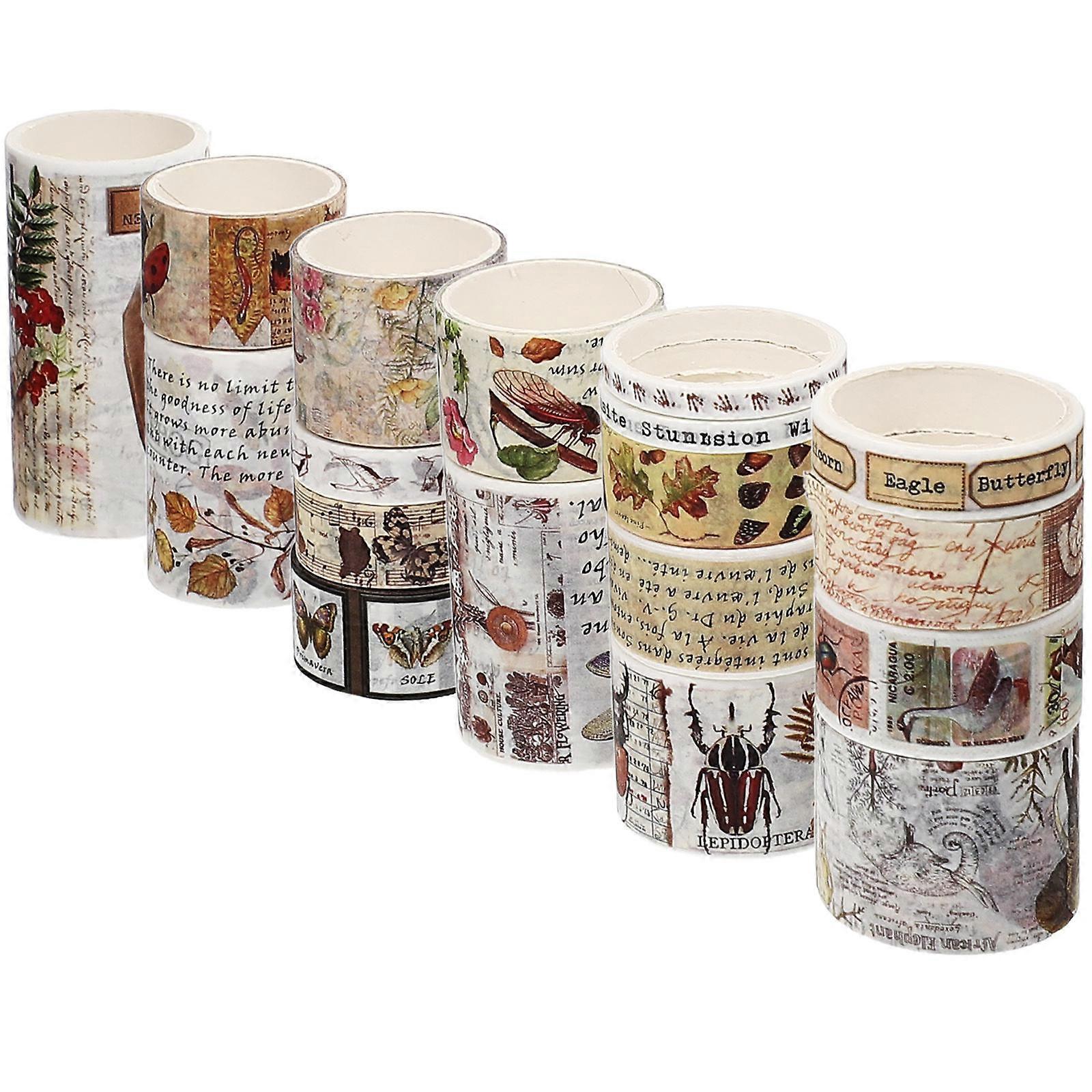 Washi Paper Tape 18 Rolls Vintage Decorative Tapes For Scrapbooking Gift Wrapping In Assorted Color With Self-Adhesive Feature