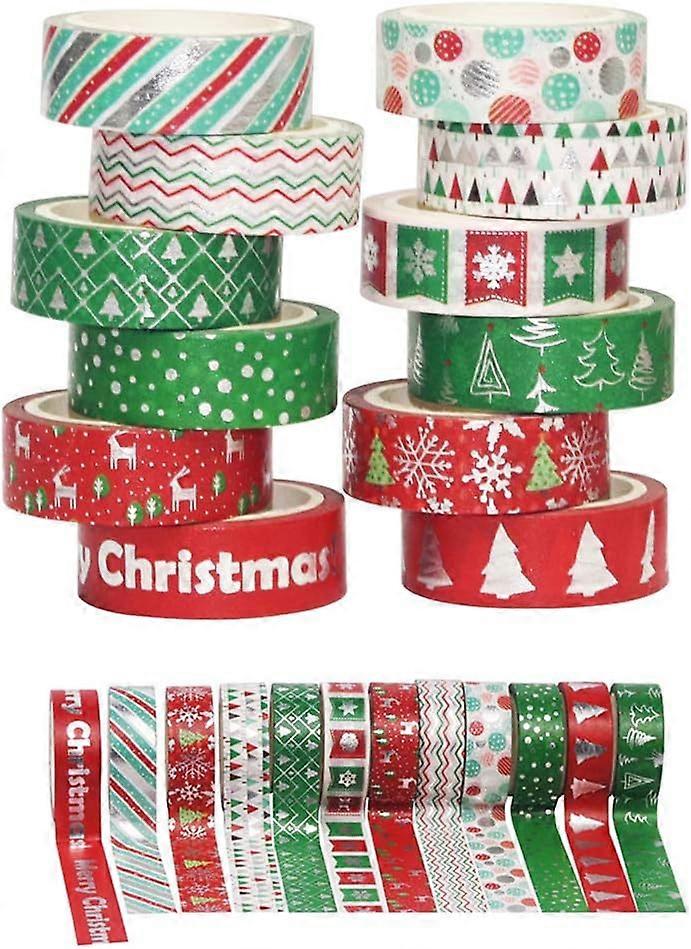 Package include: 12 Rolls Christmas Decorative Washi Tapes.