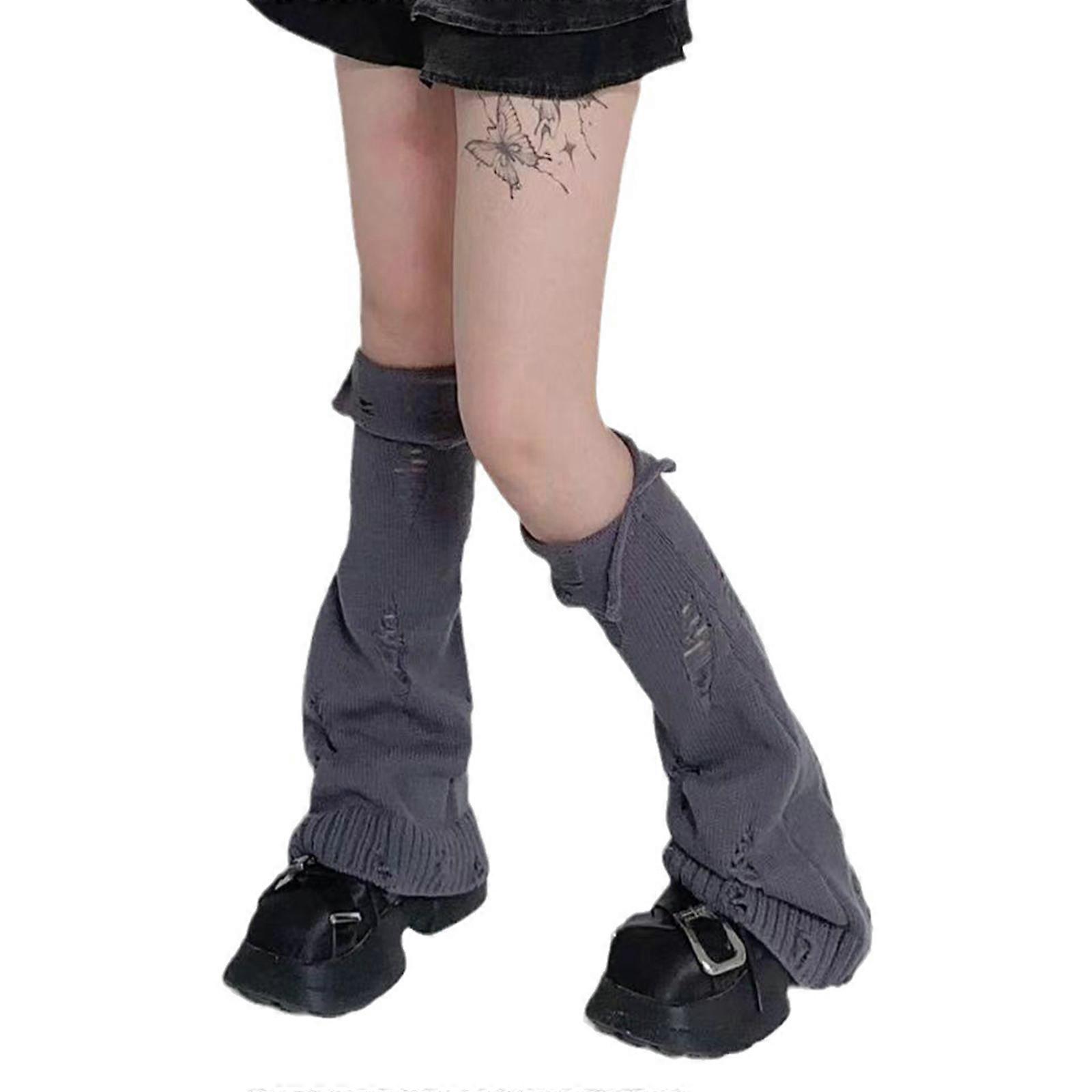 Japanese Style Leg Warmers Gothic Knit Long Socks Leggings Gaiters Autumn Winter Cuffs Ankle Heaps Socks Dark Grey