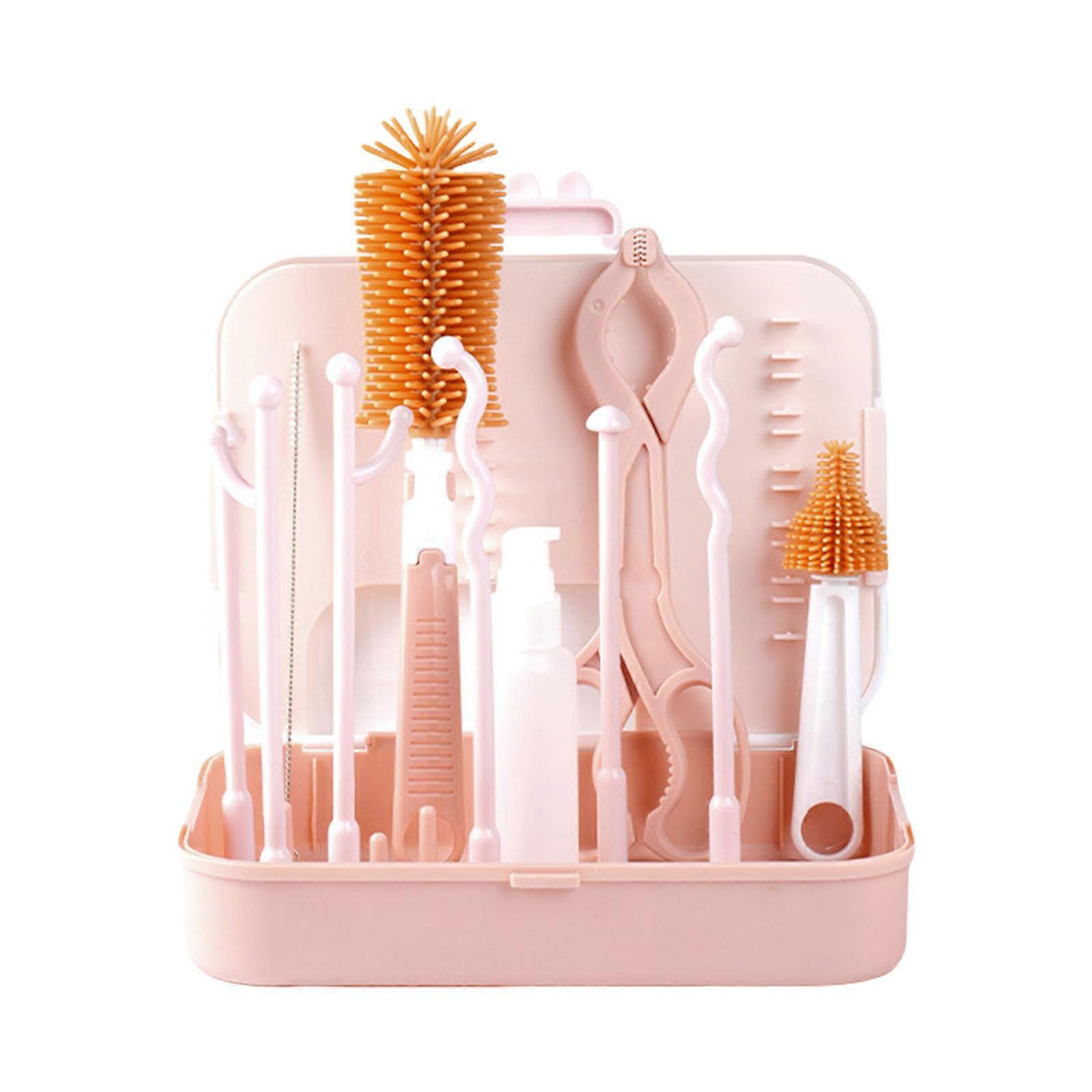 Baby Bottle Cleaning Tool Baby Bottle Cleaner Kit Brush Set with Brush Empty Bottle Drying Rack for Home and Travel Pink