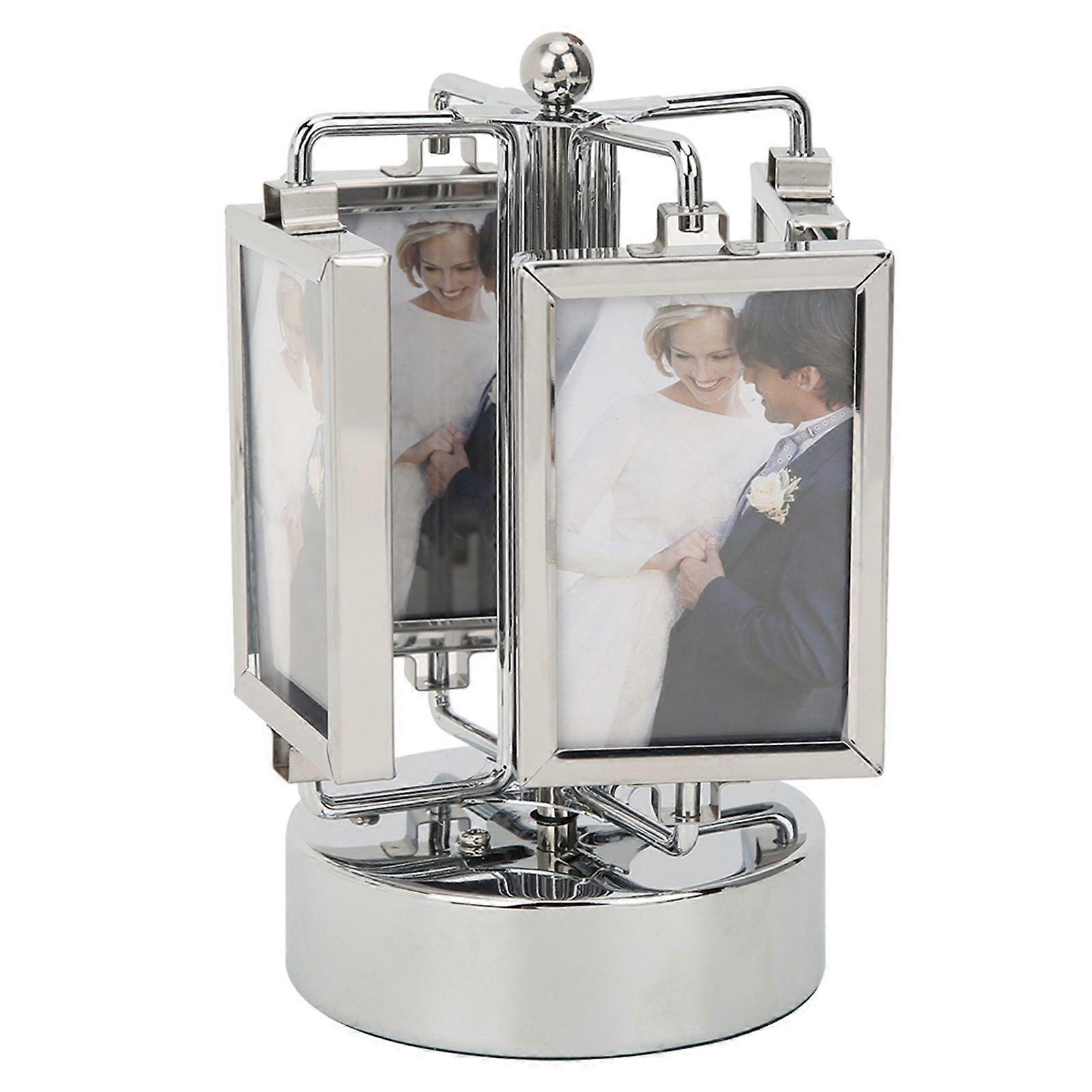Rotating Music Box Photo Picture Frame Home Living Room Bedroom Decoration for 3x2in Photo