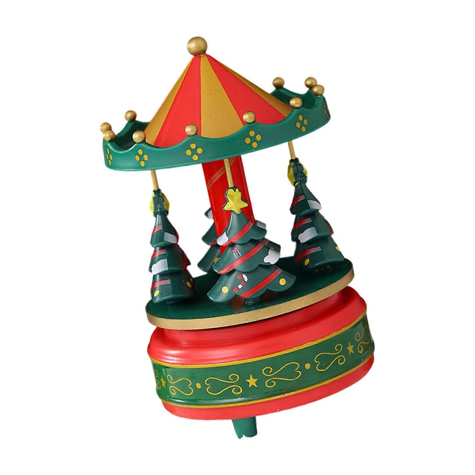 Rotating Musical Holiday Decoration Wood Christmas Tree Hand Cranked Music Box Ornament For Family Gatherings Gifting Multicolor