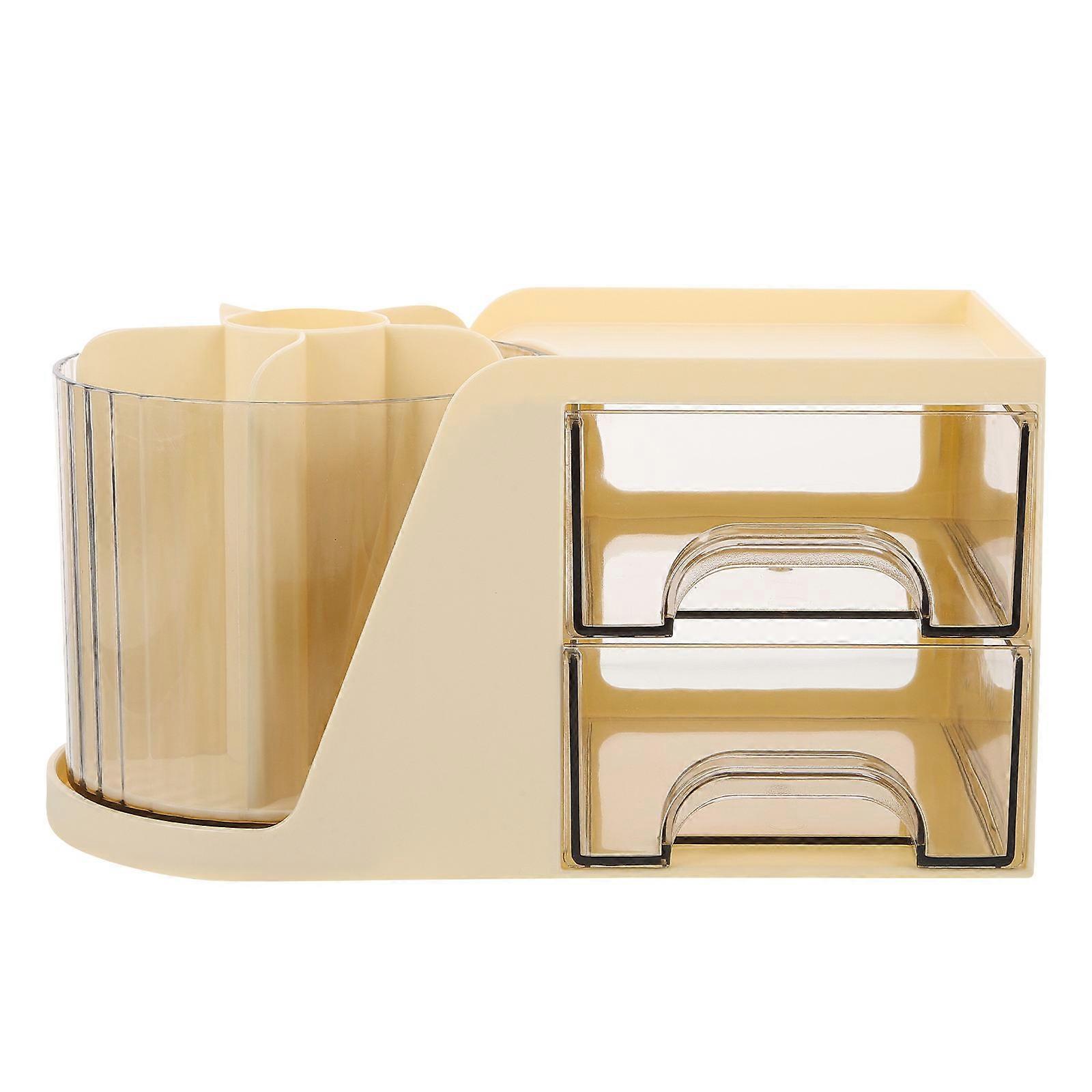 With its large capacity, featuring drawers and rotation design, the makeup organizer box can accommodate multiple makeup brushes and various cosmetics, making it a practical and stylish addition to use. The makeup organizer box also adds a touch of elegance to your dressing table, enhancing the overall aesthetic appeal. Features -Color:Beige -Material:Plastic -Size:23.00X13.00X12.00cm/9.04X5.11X4.72in -Multifunctional storage box, not only can it hold makeup brushes, but it is also suitable for storing other items such as makeup products. -The drawer and rotating design allows for easy access to your brushes and cosmetics. -Our makeup organizer easily keeps your items tidy, makes a great organizer for cosmetics, office supplies, and other sundries. -With this makeup organizer box, eliminating the hassle of searching through cluttered bags. -This makeup organizer box not only saves time but also adds convenience to your daily makeup routine. Package list: 1 x Makeup Organizer Box