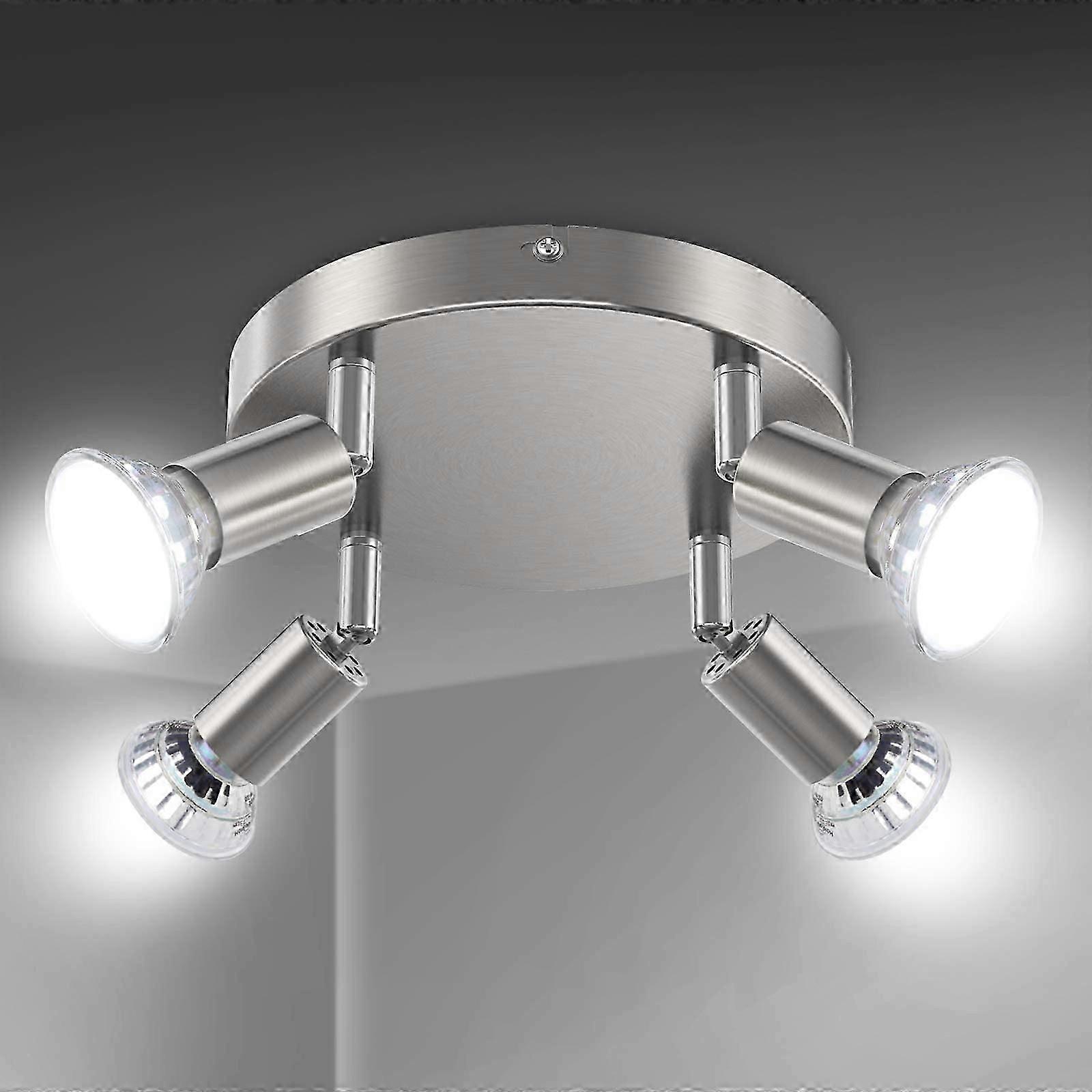 Led Ceiling Light Rotatable, 4 Way Round Plate Led Ceiling Spot Lights, Including 4x4w Gu10 Led Light Bulbs, Cool White,for Kitchen, Living Room