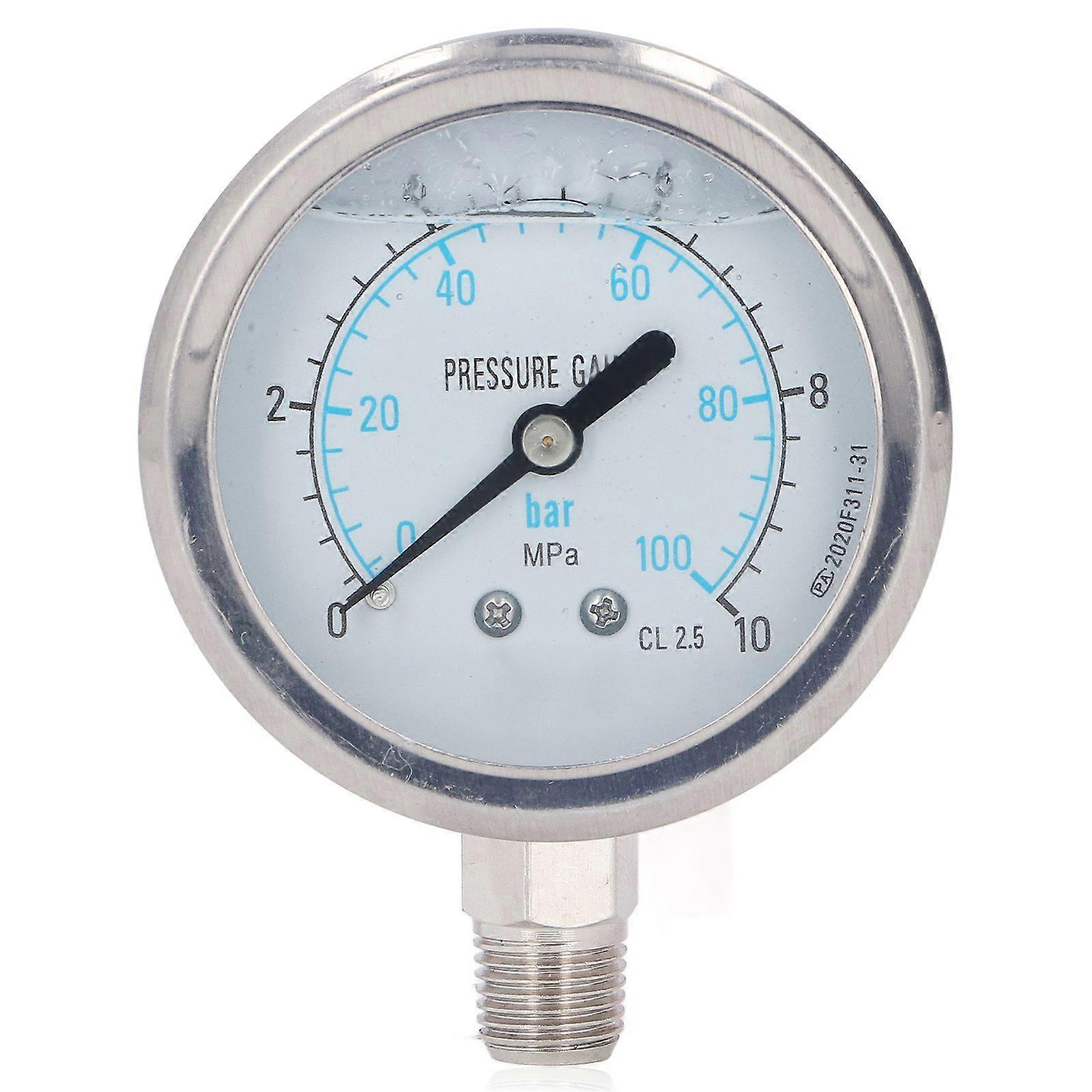 Pressure Gauge Stainless Steel 1/4in NPT Oil Water Vacuum Pressure Meter for Household Industrial 0-10Mpa