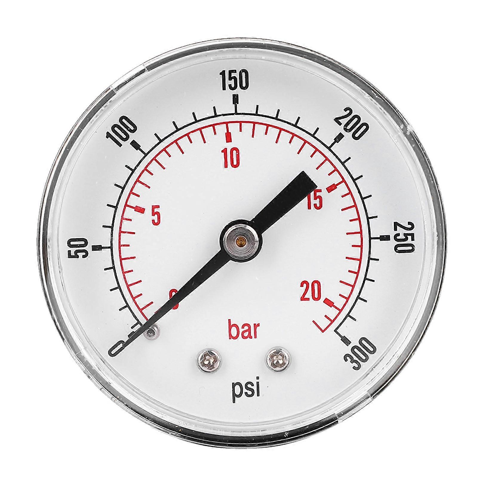 Pressure Gauge 50mm Dial 1/4 BSPT Back Connection, 0-300 PSI 0-20 Bar for Air Water Oil Gas System Testing