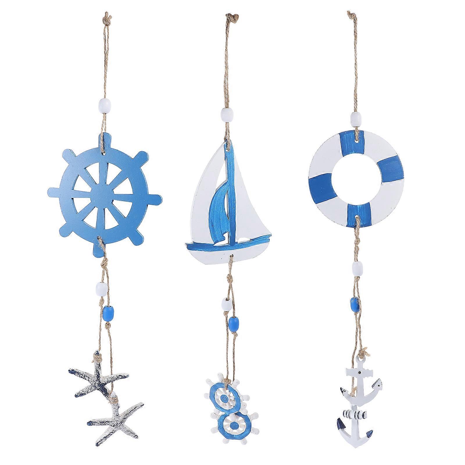 Mediterranean Theme Wall Ornament Wooden Lighthouse Shape 46x9.2cm 3Pcs Wall Hanging