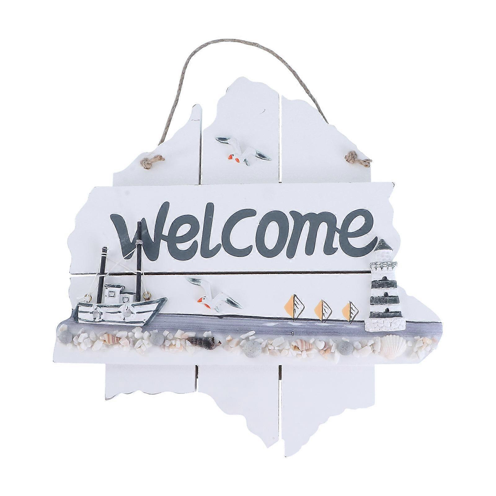Mediterranean Style Wooden Welcome Doorplate, Nautical Hanging Sign for Cafe, Bar and Home Wall Decoration, Easy Clean & Smooth Edges