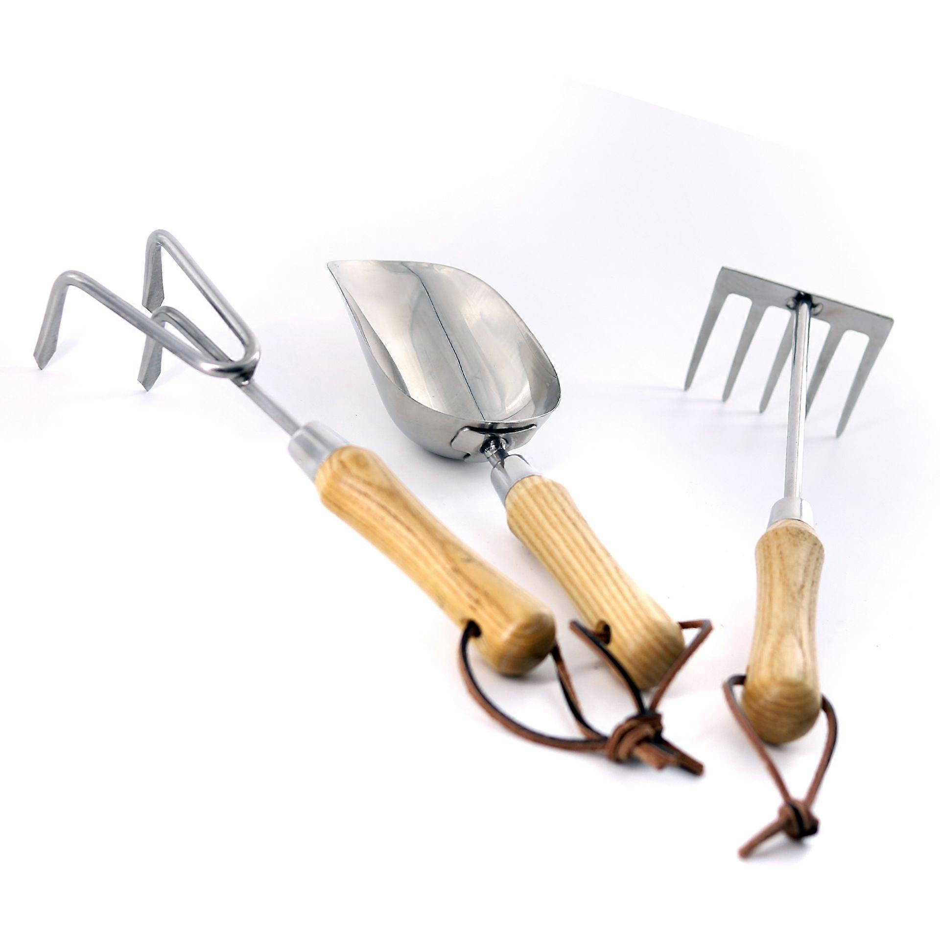 3 pack Compact Garden Scoop for Compost and Soil, Classic All Year Round Garden Tools Made from Stainless Steel and Ash Wood