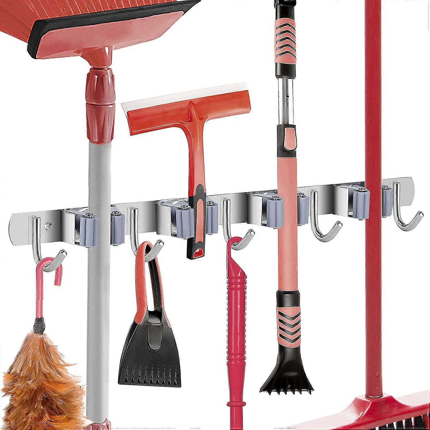 Wall-Mounted Broom Organizer, Heavy Duty Self-Adhesive Stainless Steel Tool Holder With Moisture Proof Waterproof Design For Home Garden Use (Blue)