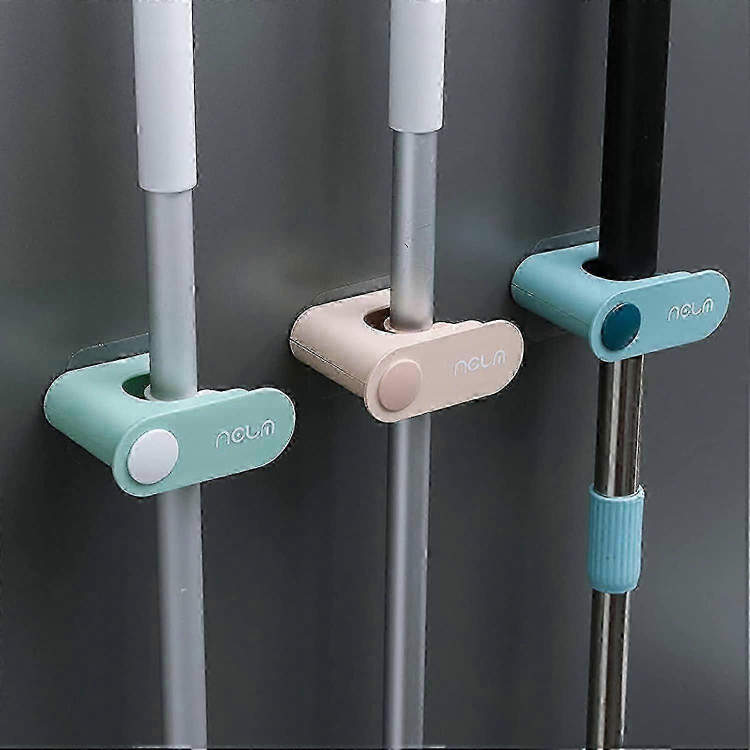 Wall Mounted Broom Holder, 3-Pack Self Adhesive No Drill Mop Clips for Kitchen, Bathroom Organizer