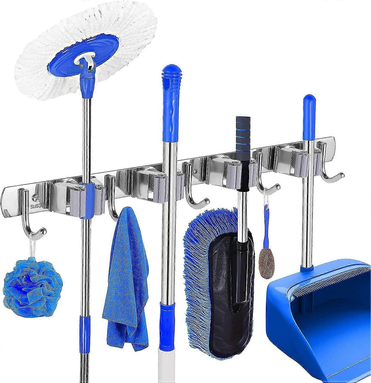 Wall Mounted Broom Holder, Stainless Steel Wall Mounted Broom Holder, Storage Hanger Holder, For Kitchen Garage Garden Laundry Room (4 Slots And 5 Hoo