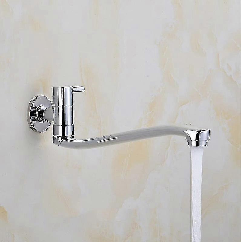 Wall Mounted Cold Water Sink Faucet, Single Handle Brass Tap For Kitchen Garden Outdoor Laundry Sink With Stainless Steel Tube, Chromed, 12 InchXH