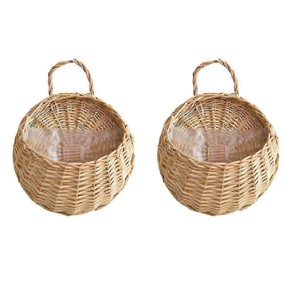 Wall Mounted Natural Wicker Flower Basket Flower Pot, Rattan Vase Basket,Yellow