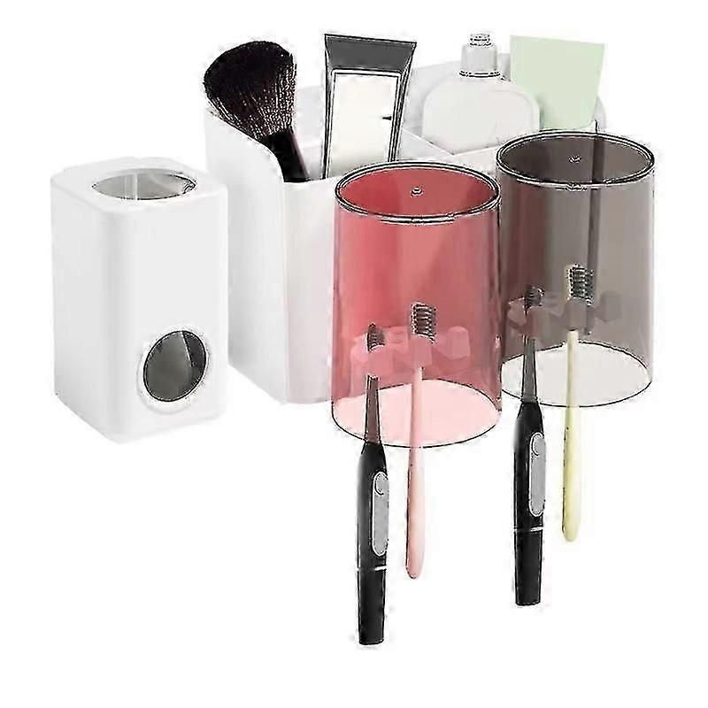 Wall-mounted Self-adhesive Bathroom Toothbrush Holder With Toothpaste Dispenser, All-in-one Toothbrush Storage Accessories White Betterlifefg