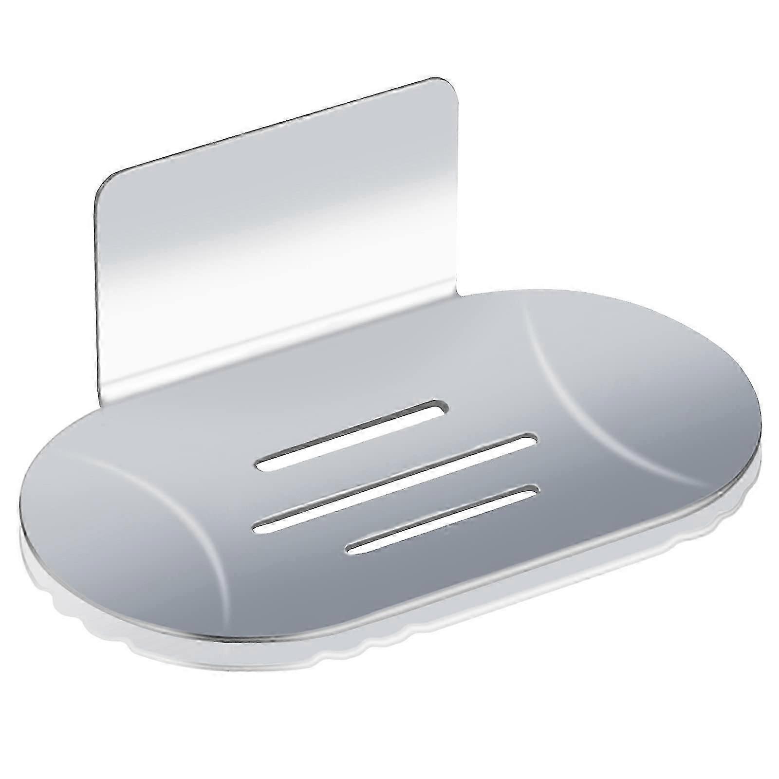 Wall Mounted Self Adhesive Soap Dish, Stainless Steel Shower Soap Dish, No Drilling Soap Box (Silver)