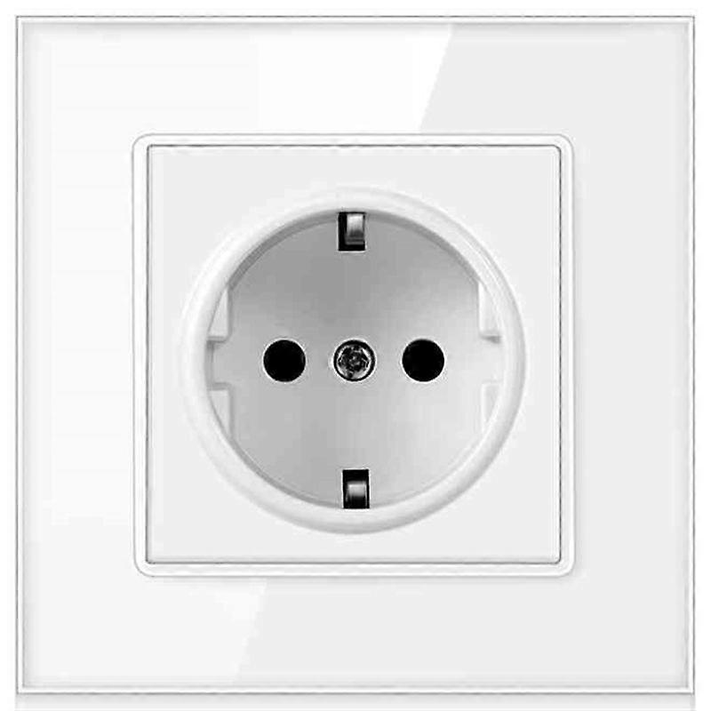 Wall Electrical Outlet Socket 110V-250V German European Power Socket White Glass Panel 86*86mm