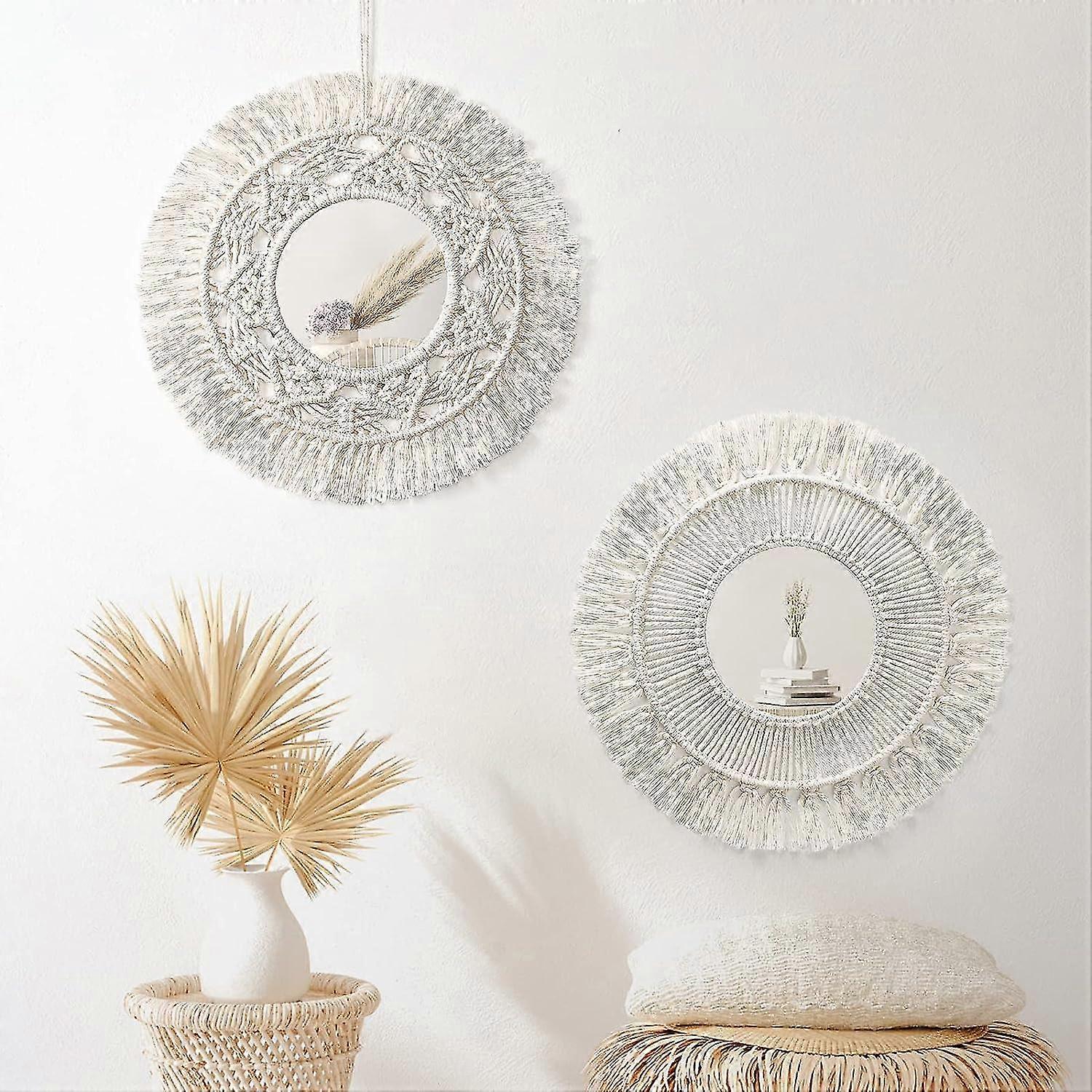 Wall Fringe Wall Decor, 2 Sets Bohemian Round Wall Decorations for Apartment, Bedroom, Living Room (Beige, 2 Pieces)
