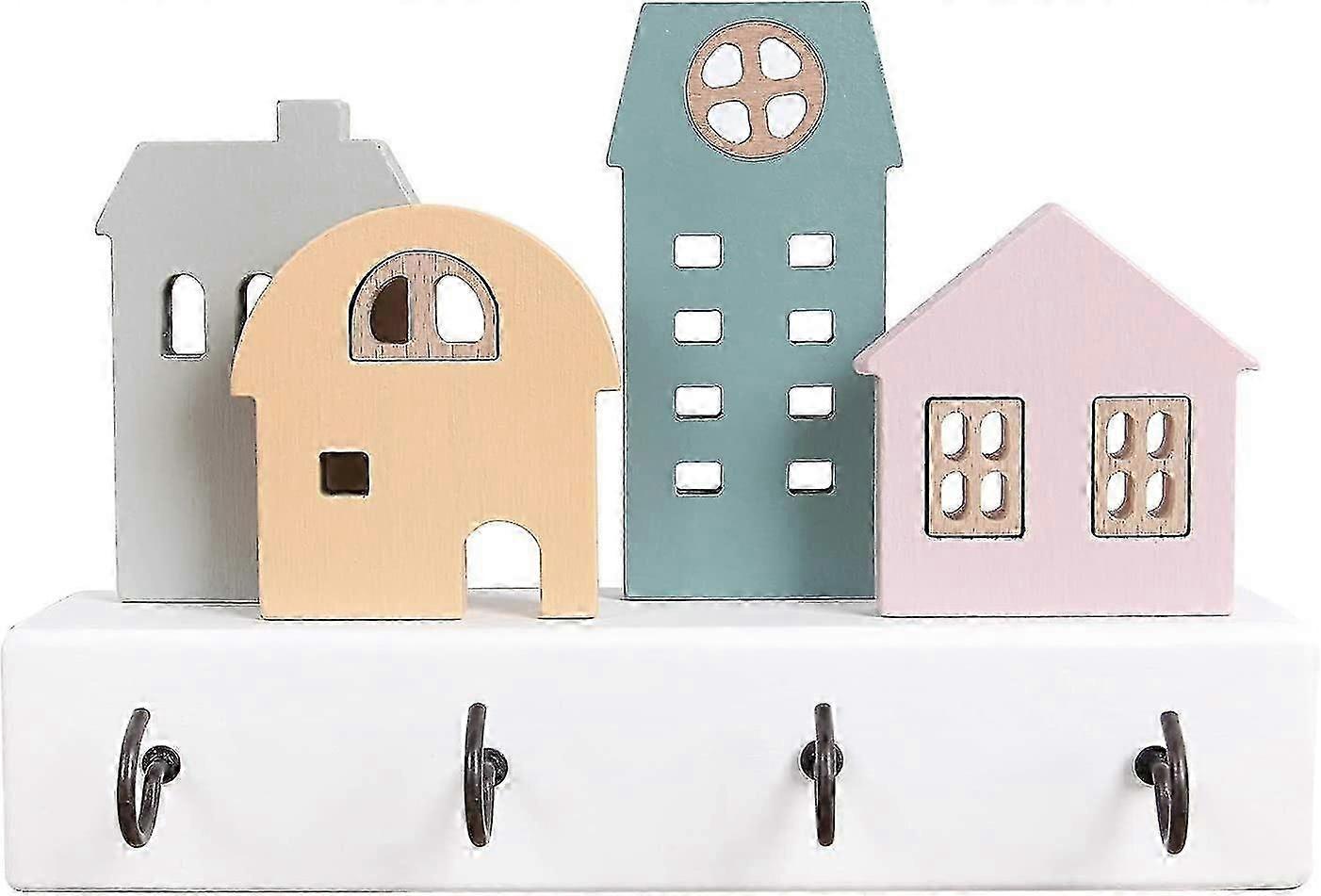 Wall-mounted Key Holder Wall Key Hanger Wooden Wall Organizer With 4 Hook Gift