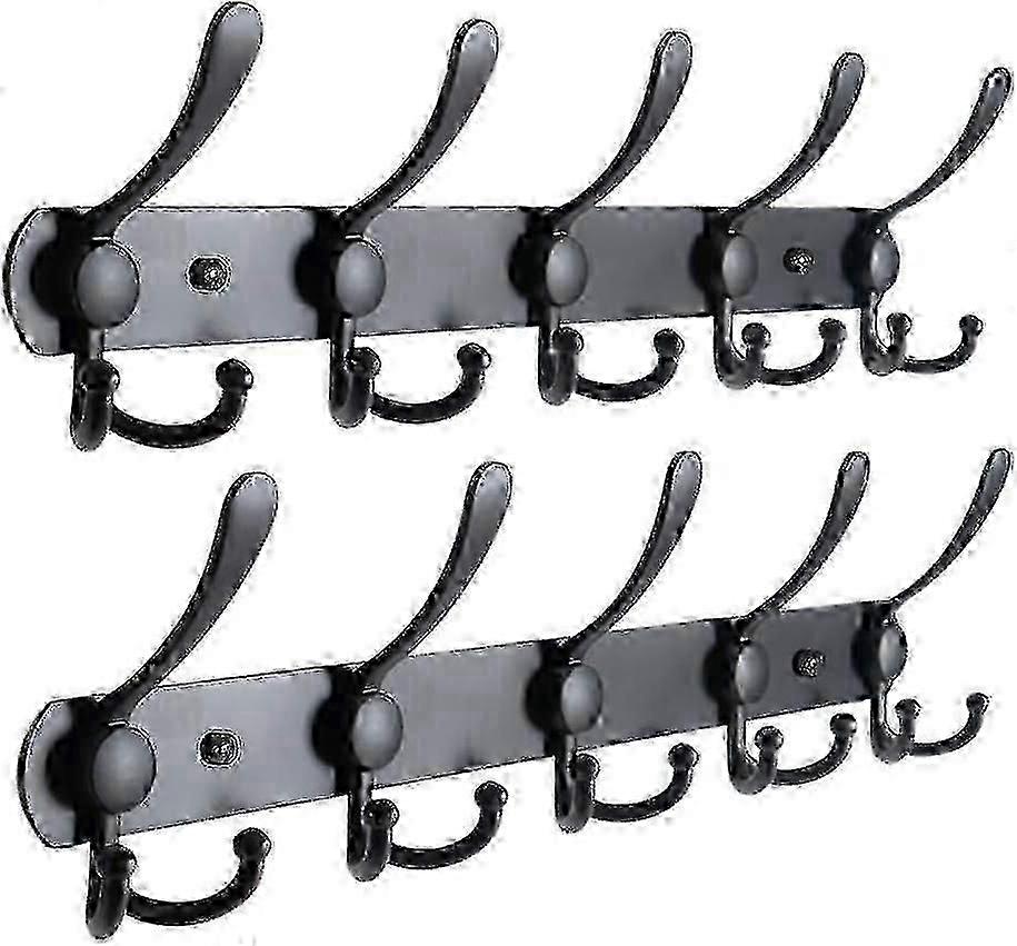 Wall-mounted Coat Rack, Black, Coat Rack, Wall-mounted Coat Hooks, Stainless Steel Coat Rack With 15 Hooks, Coat Rack, Coat Rack (black, 2 Pieces)