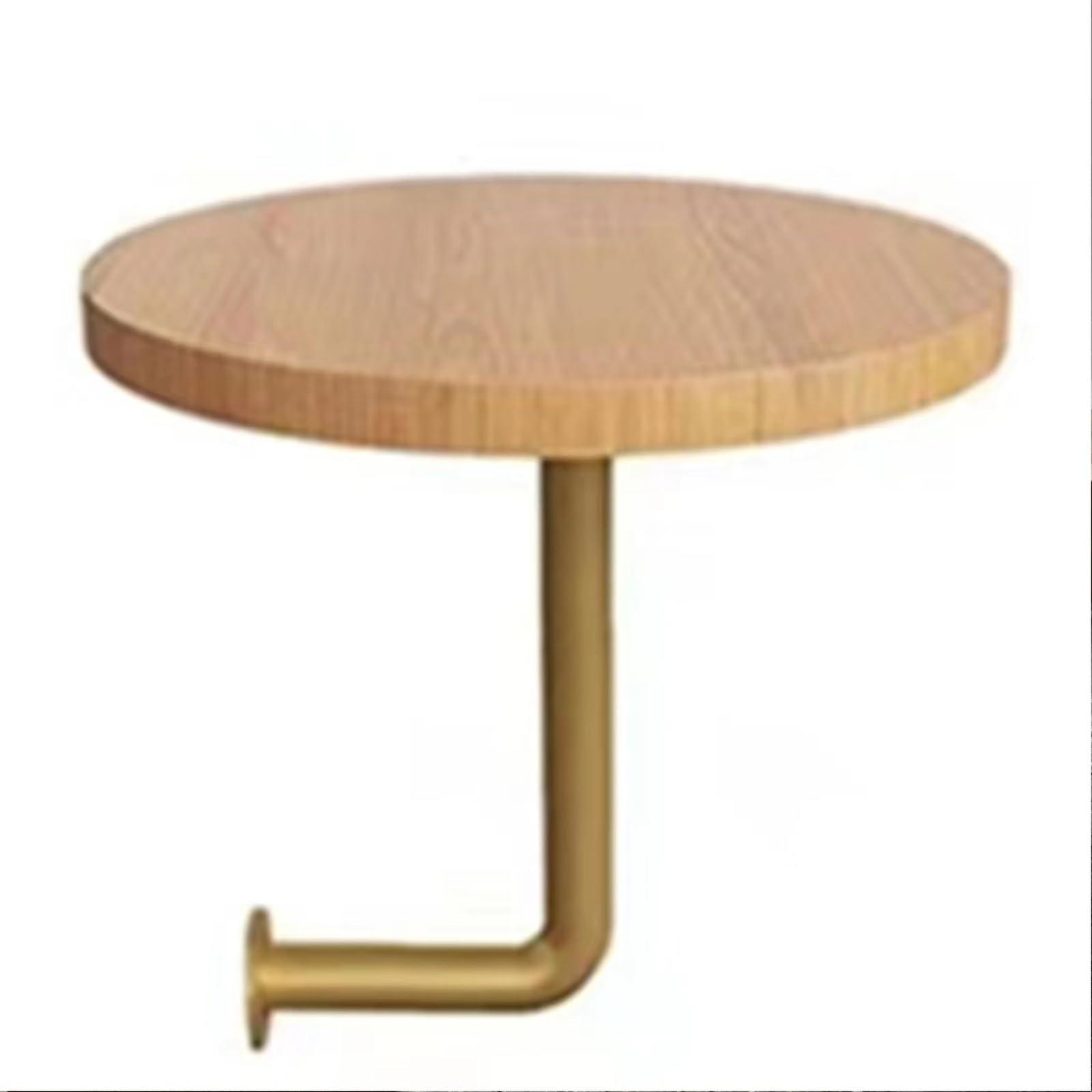 WallMounted Table Small Round Floating Desk Solid Wood Gold Rod Accent Wood Color Ideal For Milk Tea Cake Shops
