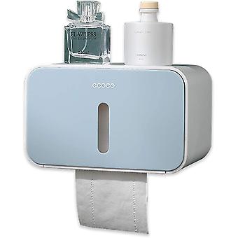 Wall Mounted Toilet Paper Holder, with Storage Shelf, Self Adhesive No Drilling: Bath Installations with Waterproof and Dust Cover (Blue)