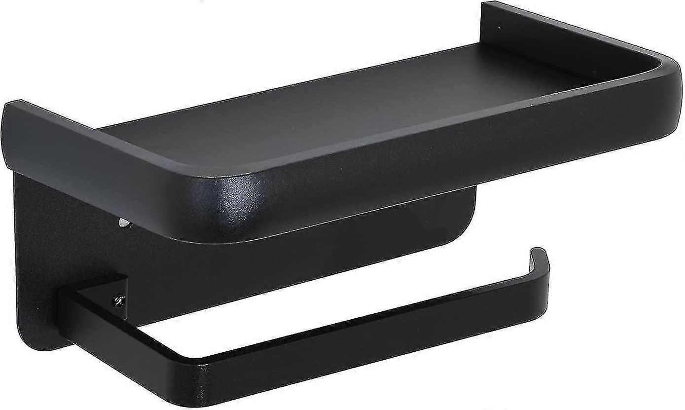 Wall-Mounted Toilet Paper Holder with Shelf | Aluminum Alloy Bathroom Organizer