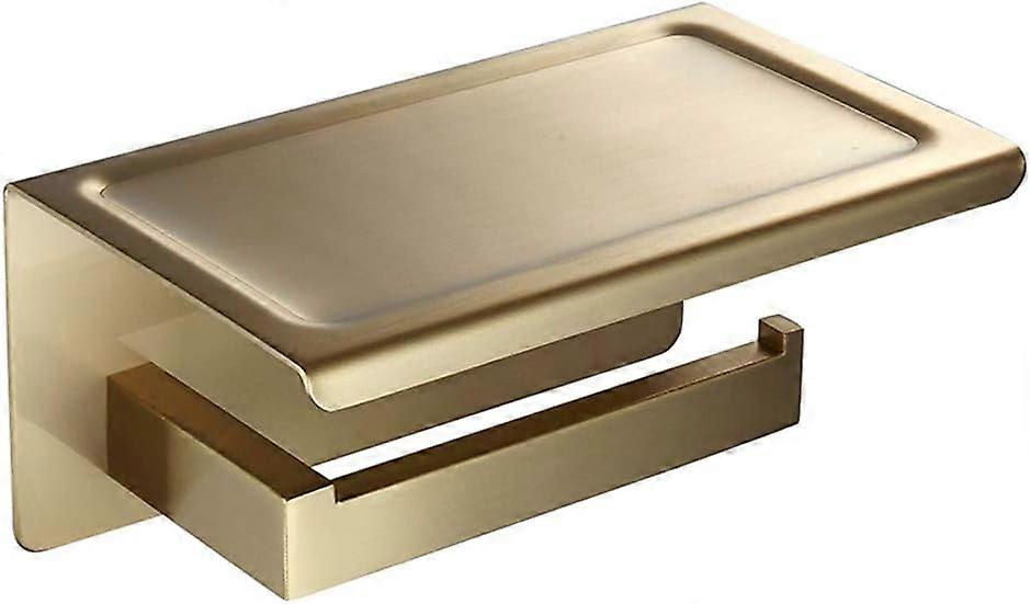 Wall Mounted Brushed Gold Finish Paper Towel Holder With Cell Phone Holder Shelf Stainless Steel Construction For Bathroom