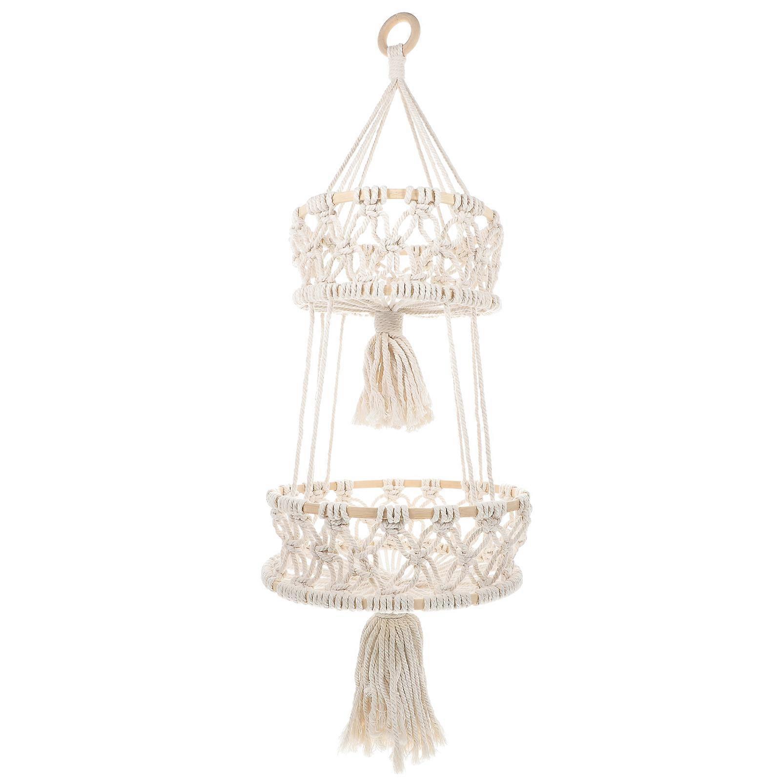Wall Hanging Rope Basket Cotton Rope Fruit Basket For Kitchen Use Beige 71X25CM Vegetable Storage 1Pack