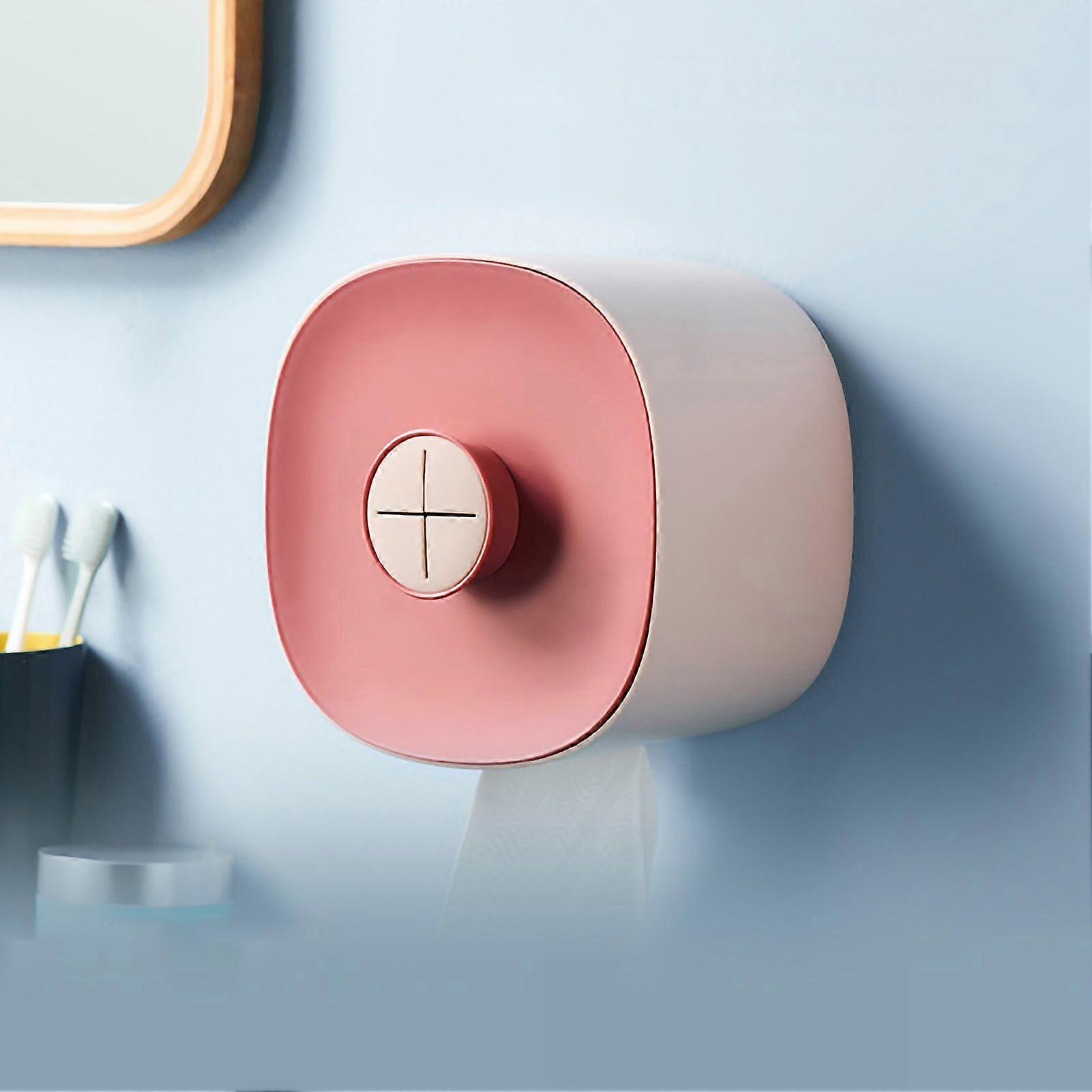 Wall Mounted Roll Paper Storage Box Multifunction Punch Free Toilet Paper Box for Home Pink
