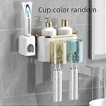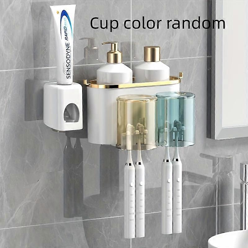 Wall Mounted Toothbrush Organizer Plus - Space-Saving Bathroom Rack with Gargle Cups, Hypoallergenic Toothpaste Dispenser and Holder for Easy Storage