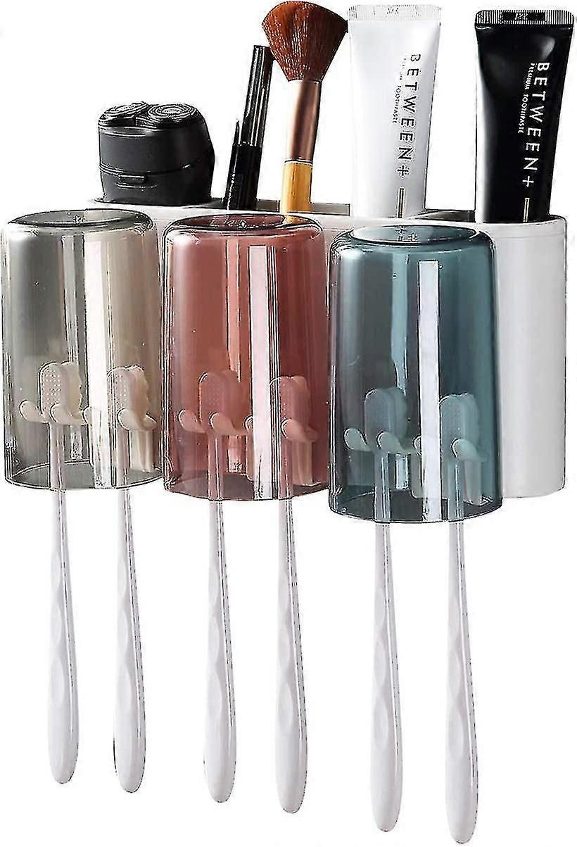 Wall-mounted Electric Toothbrush Holder, Automatic Toothbrush Holder With Toothbrush Slots, Drawer Cosmetic Storage, No Drilling(3 Cups)