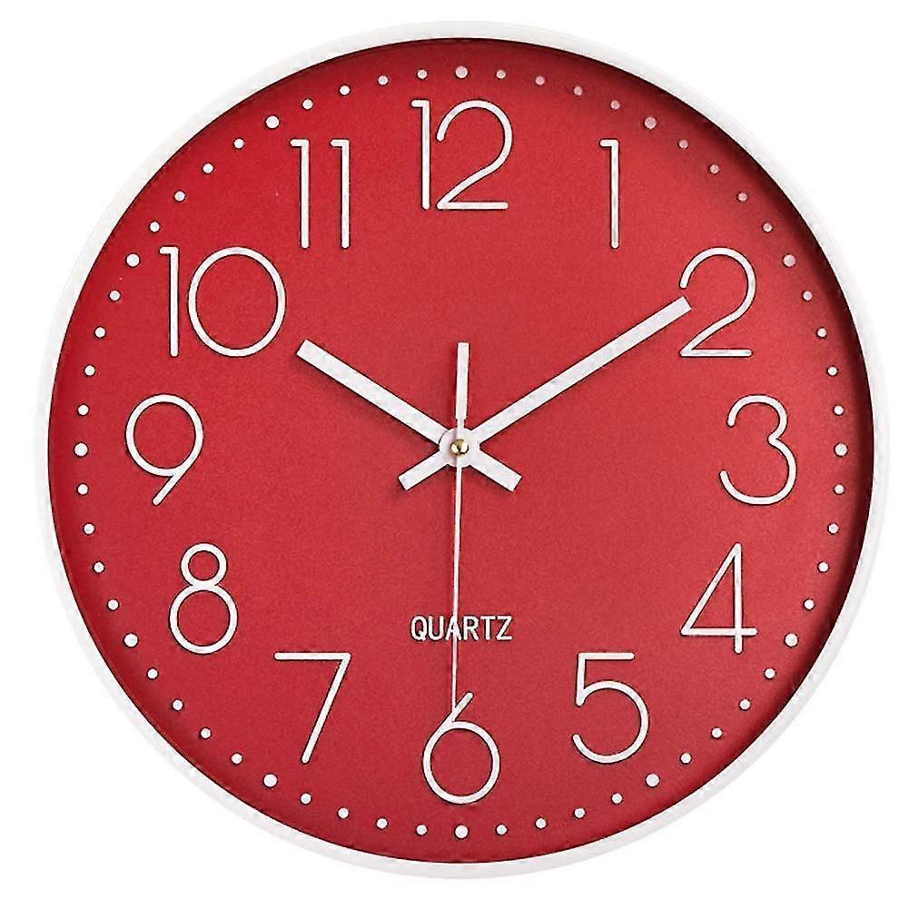 Wall Clock Kitchen Clock Quartz Battery Operated Round Modern Home Decor Clock For Living Room Office Class Room Bedrooms (red)