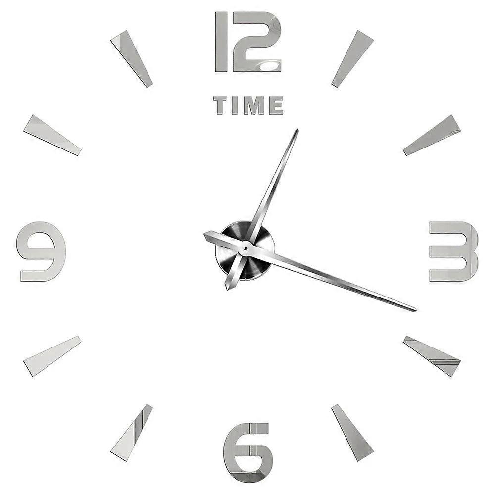 Wall Clock Silver Design 37 Inch 3D Diy Mirror Acrylic Sticker Quartz Watch Wall Clocks