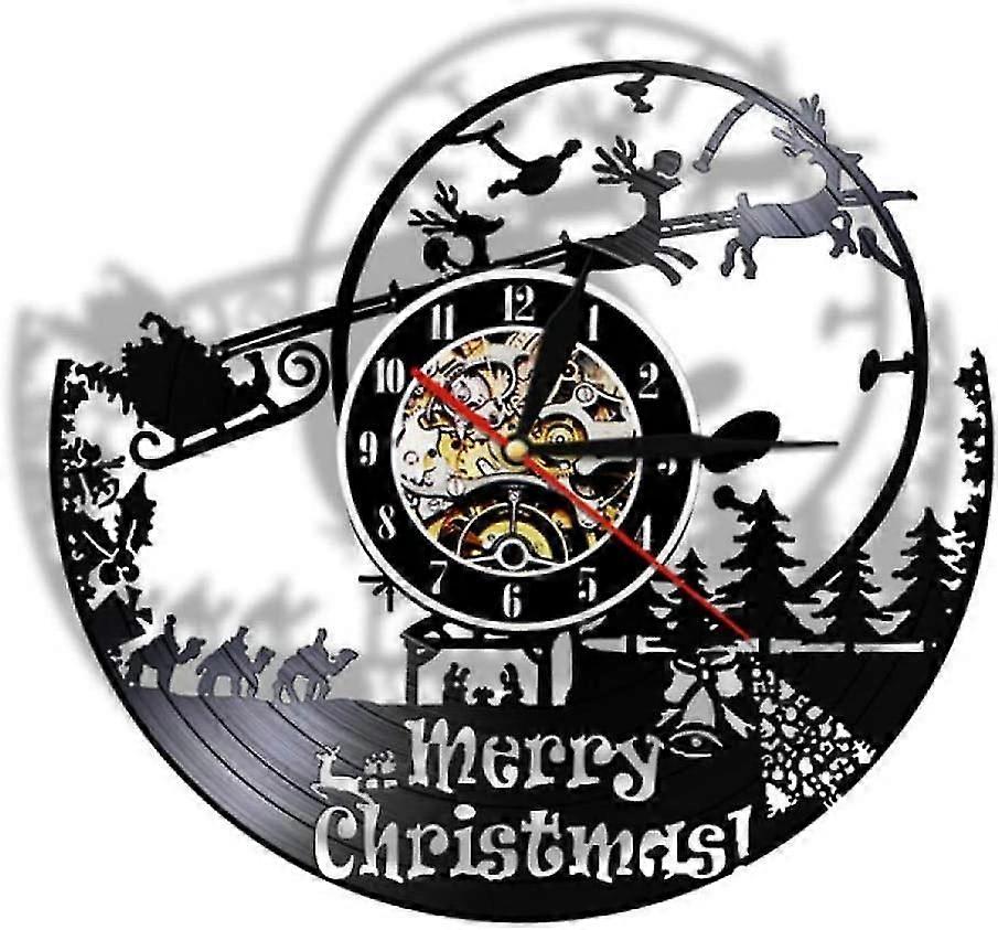 Wall Clock Merry Christmas Santa Claus Vinyl Record Wall Clock Retro Wall Decoration Elf Clock Wall Clock(29.5x29.5cm)