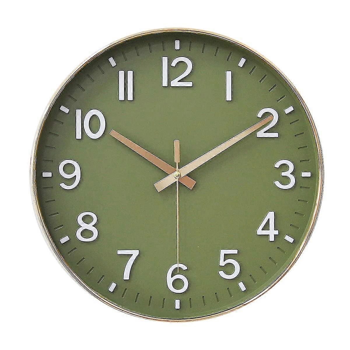 Wall Clock 12 Inch Silent Clock For Living Room (golden Green)