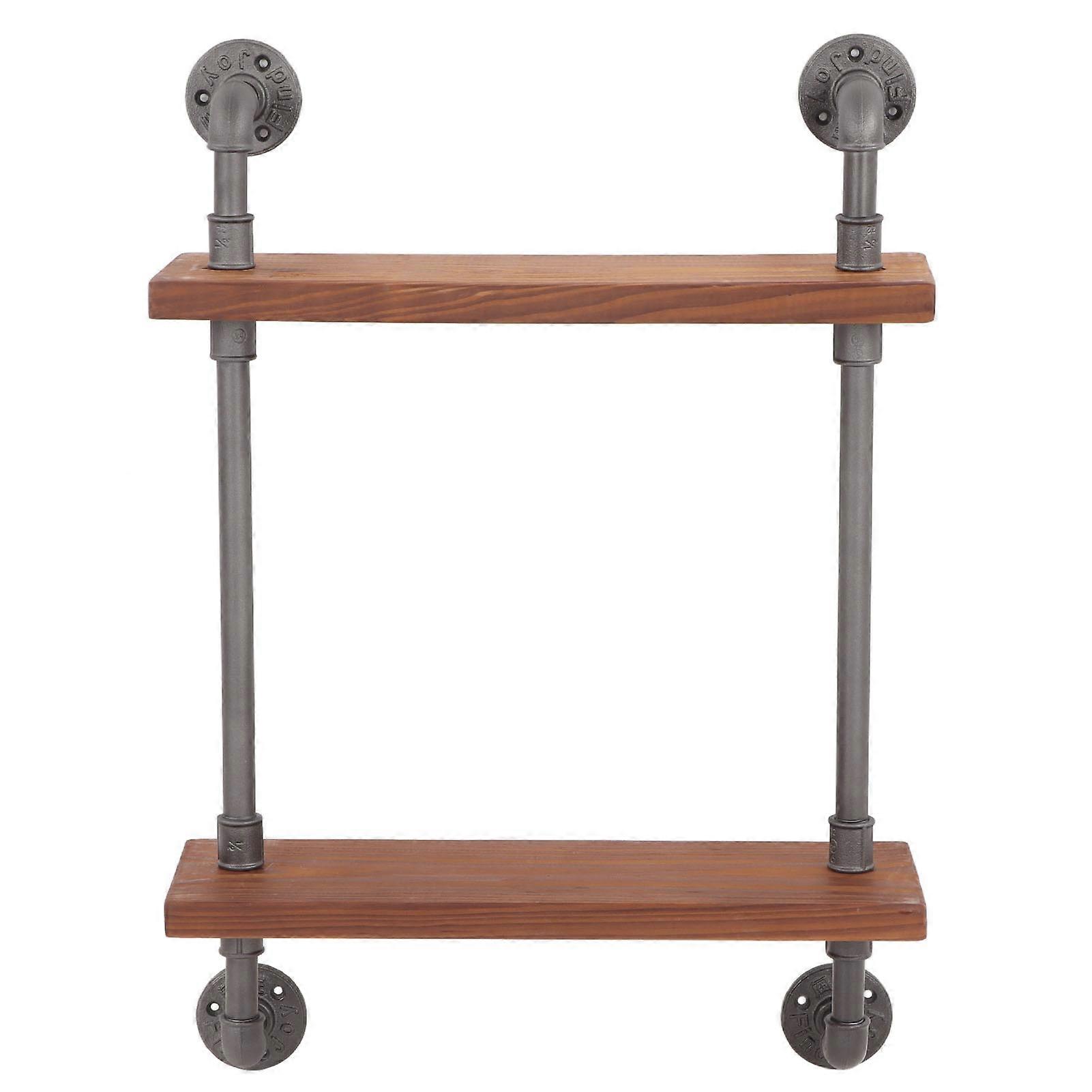 Wall Mounted Shelf Solid Wood Board Wrought Iron Pipe Retro Floating Shelves Wall Shelf for Home Bar Double Layer