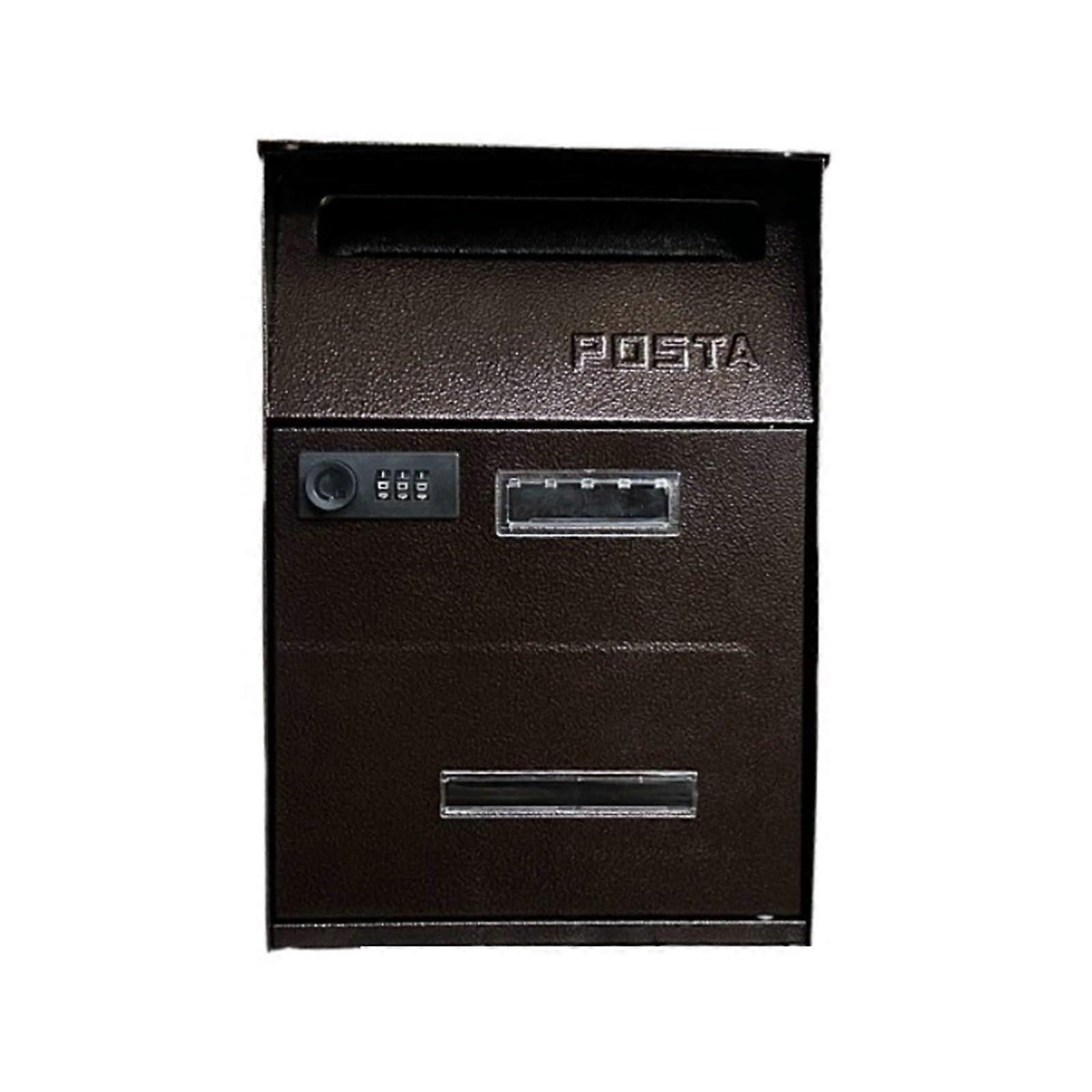 Lockable Mailbox For Wall Mounting, Office Suggestion Box With Ballot Slot, 32x10.5x21.5 cm, Brown