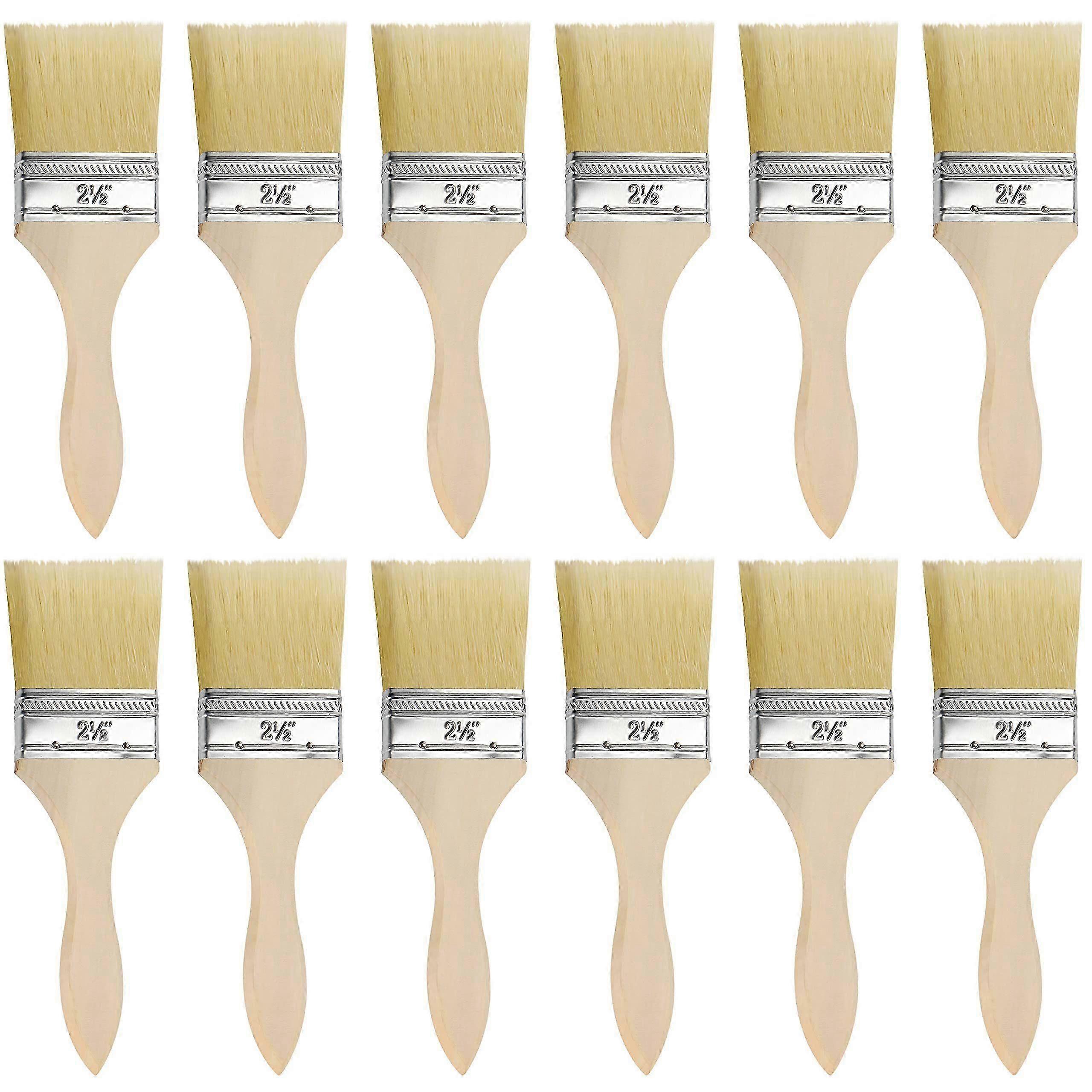 Set of 12 Wall Painting Brushes - Brush Head 6 cm & Total Brush Size 19.5 cm - Flat Paint Brush for Painting on Chips, Silicone, Gesso, Stains, Varnis