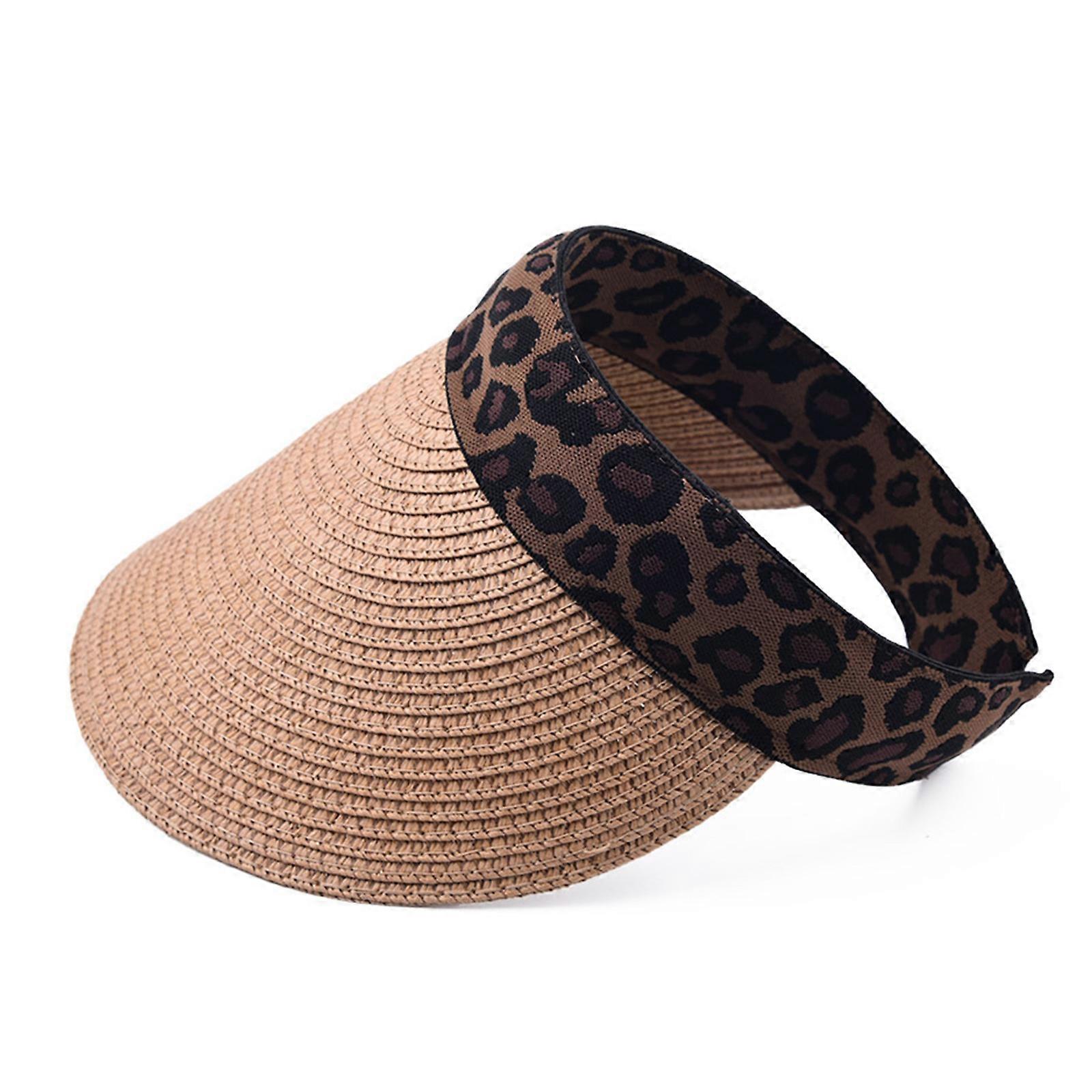 Summer Vintage Leopard Straw Cap Breathable Beach Empty Top Hat All-match Surprise Valentine's Day Gift for Girlfriend Wood color