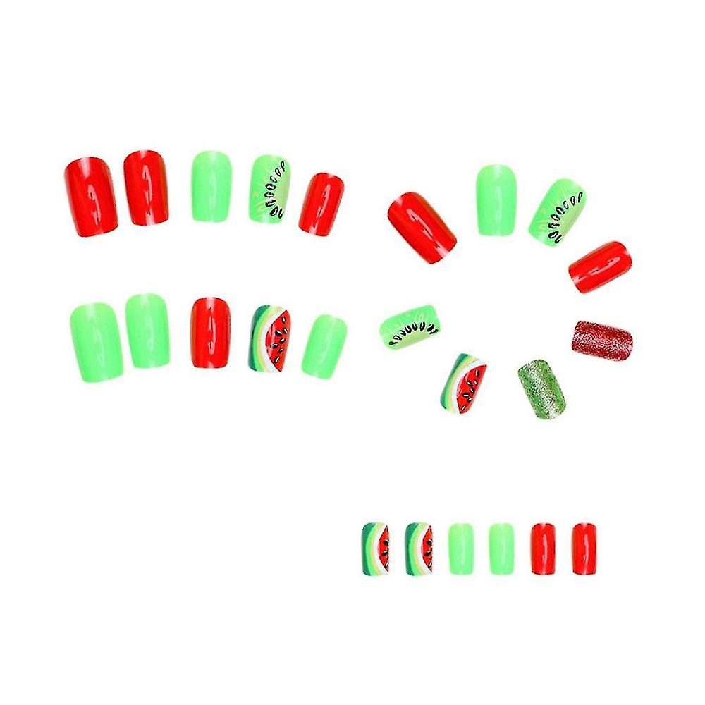 Summer Watermelon Wearable Long Nails Full Cover Finished False Nails Press On Nails With Glue