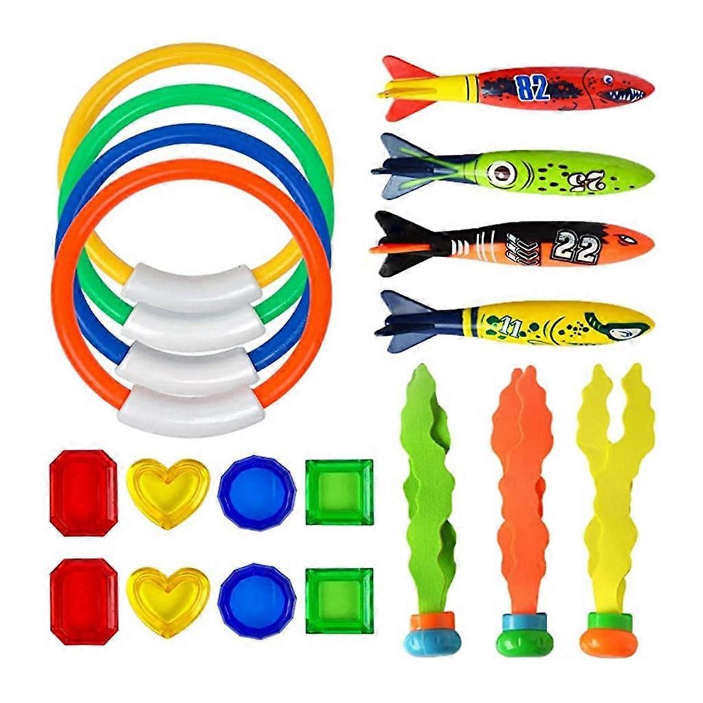 Features: They can float on the-surface or stand up on the bottom, allows you to improve your diving and swimming skills by retrieving them. Made of high-quality plastic material, non-toxic, smooth-edge without burr, will not hurt your kid little hands. Comes with a storage bag, allows you to put them in for easy storage and carrying. Bring them to your next pool party, or use them as party favor. A great addition to any underwater playing. Multi-type provided, you can choose your favorite. Specifications: Material: Plastic Color: 22pcs, 18pcs, 11pcs, 19pcs, 20pcs, 23pcs, 31pcs Note: 1: Please allow 1-2cm errors due to manual measurement, make sure that you do not mind before you order. 2: Due to the difference between different monitors, the picture may not reflect the actual color of the item. Package includes: 1set Kid Swimming Pool Diving Toy